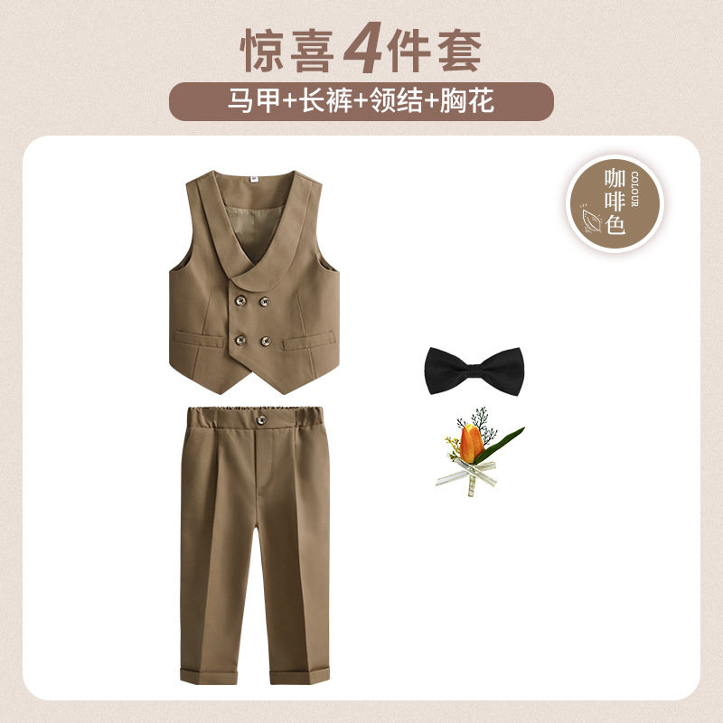 • 다크 브라운 4 종 세트 (양복 조끼 + 바지 + 코사지 + 나비 넥타이)