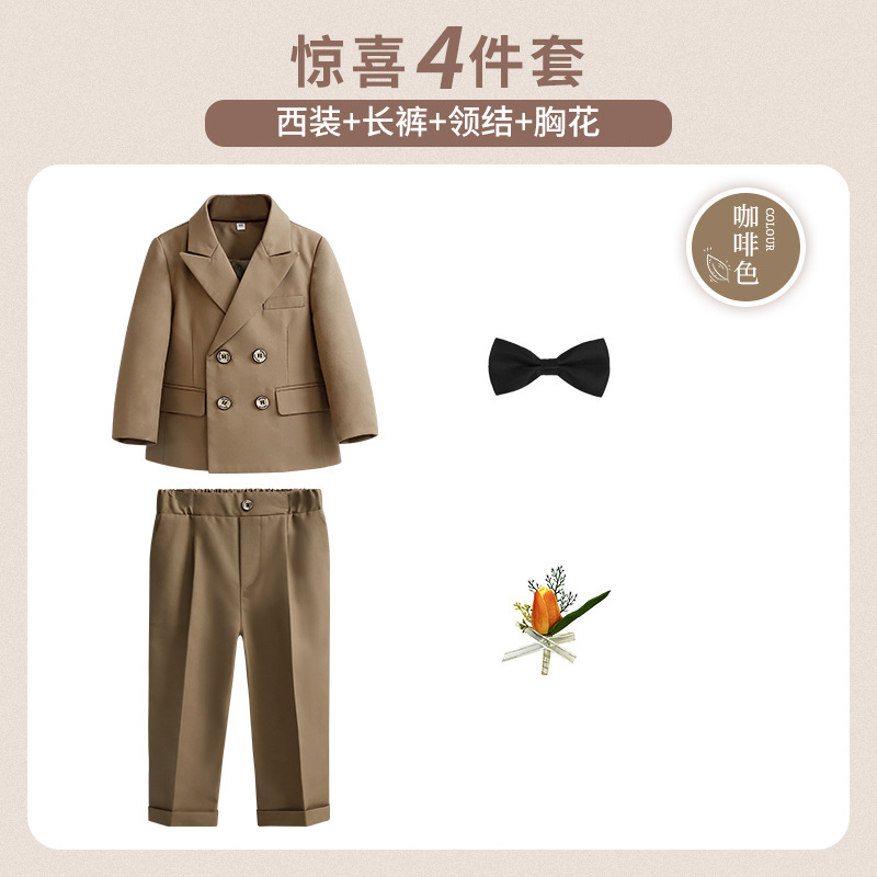 • 다크 브라운 4 종 세트 (코트 + 바지 + 나비 넥타이 + 코사지)