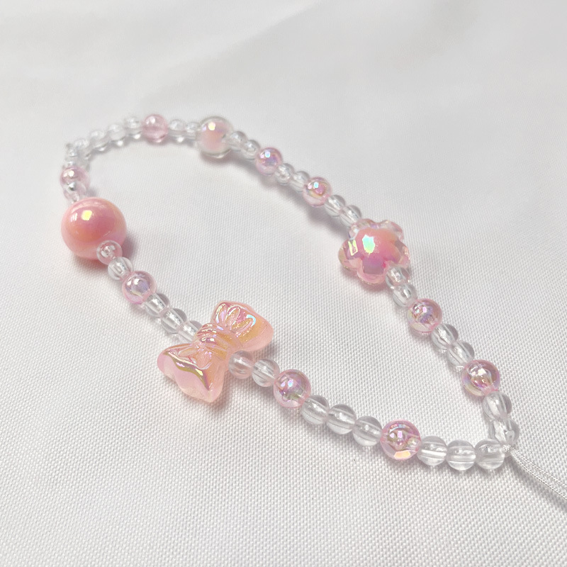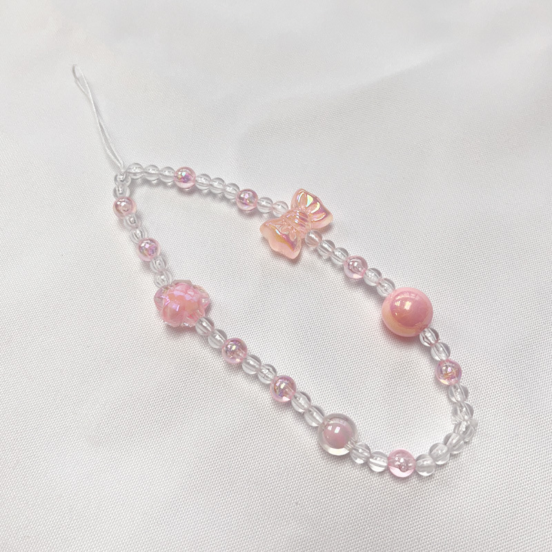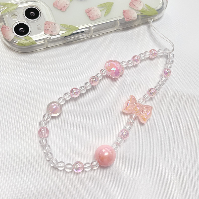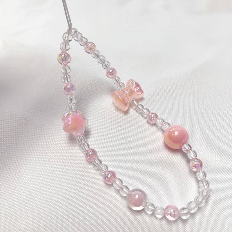 새로운 핑크 활 휴대 전화 끈 구슬 휴대 전화 디지털 펜던트 키 유니버설에 다채로운 꽃 구슬스토어 가기