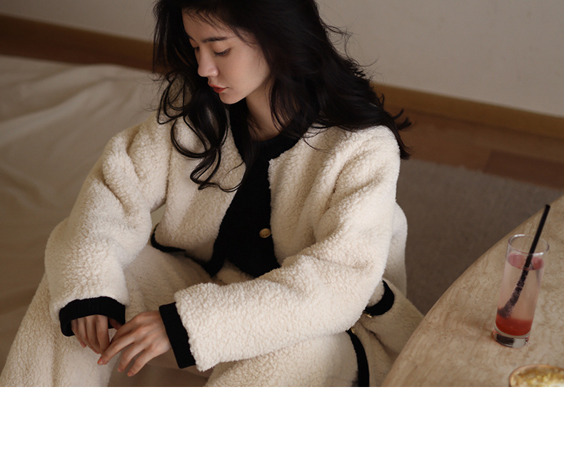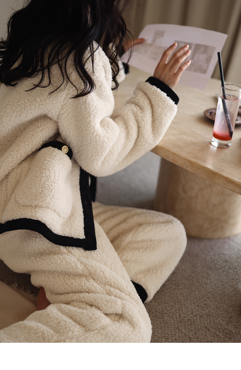 겨울 새로운 잠옷 여자의 샤넬 스타일 카디건 기모 두꺼운 플란넬 아웃웨어 부드러운 가정 옷 세트스토어 가기