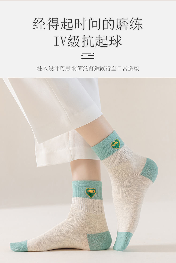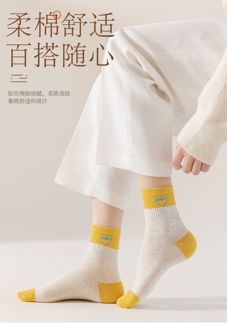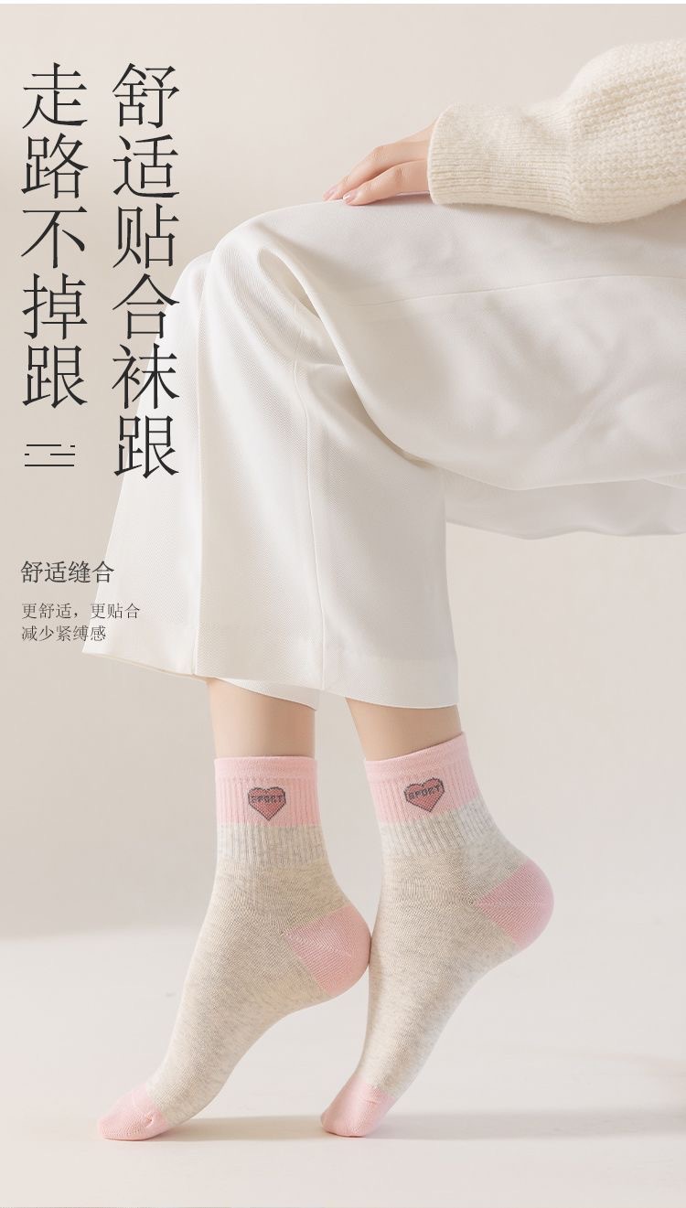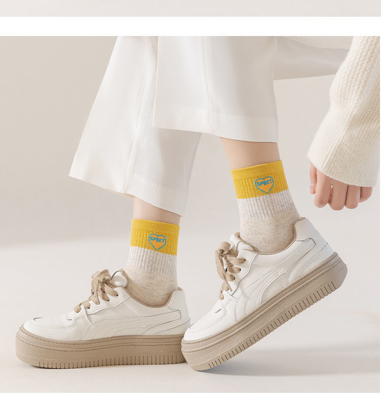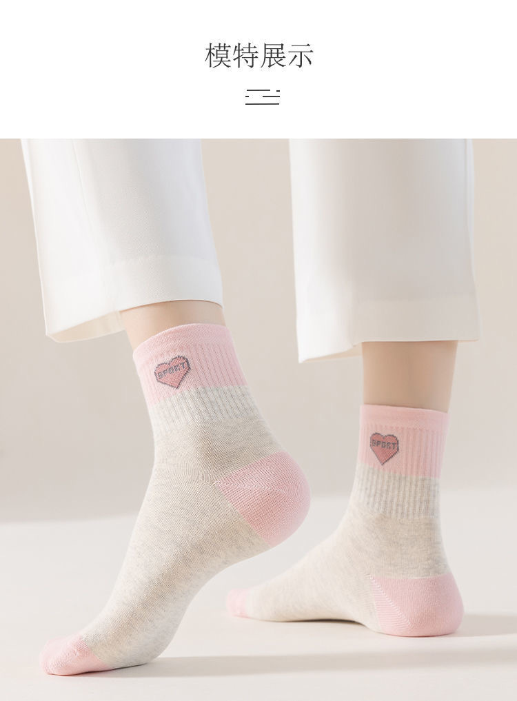 여성용 중목 양말 가을 겨울 스포츠 면 양말 땀 흡수 한국 스타일 일본식 단색 하트 양말 통기성 양말