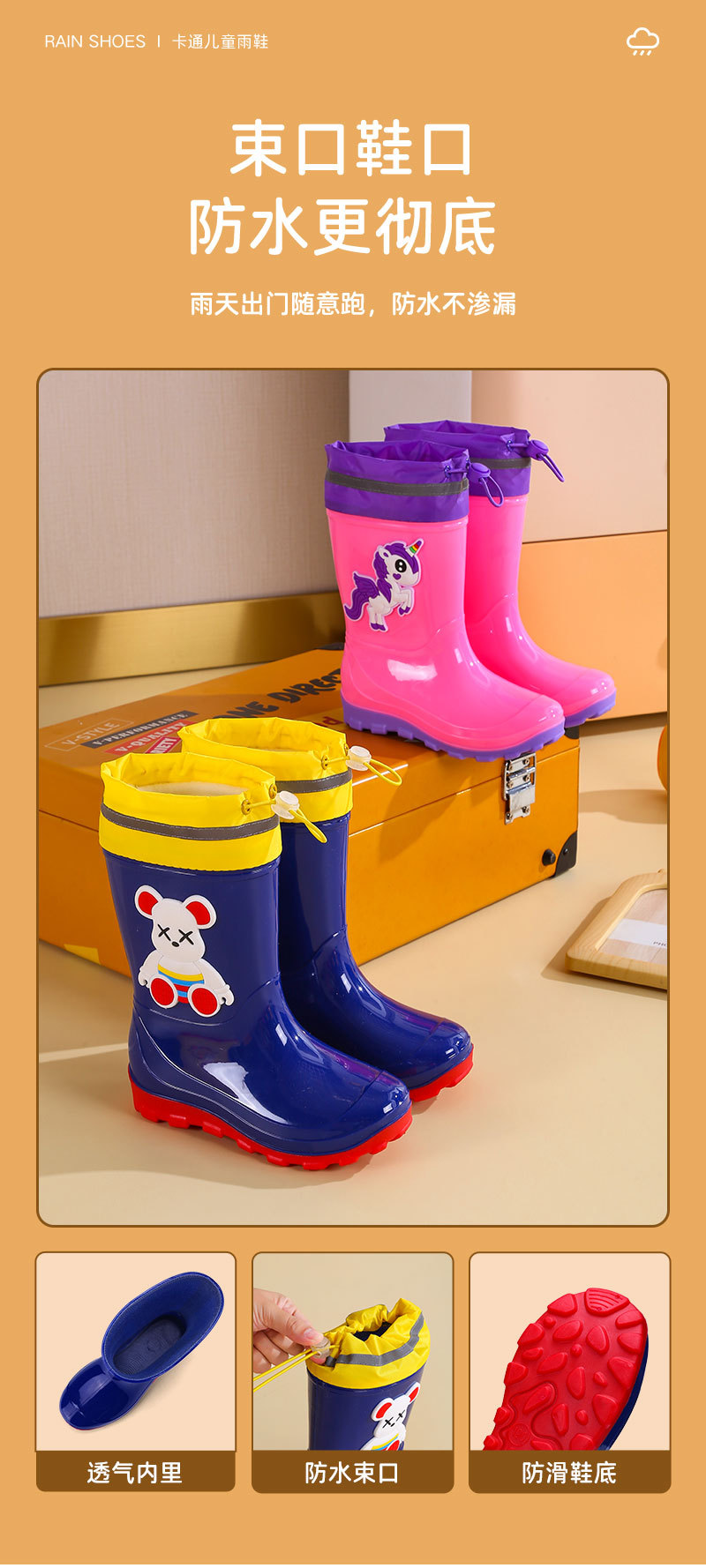 물 신발 중대형 어린이 장화 소년 소녀 미끄럼 방지 장화 탄성 입 안티 누출 수중 비오는 날 학교 고무 신발스토어 가기