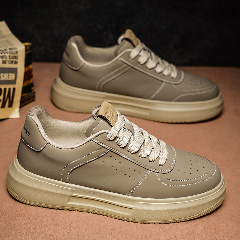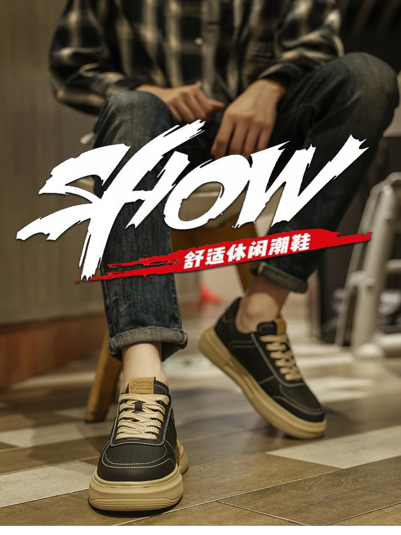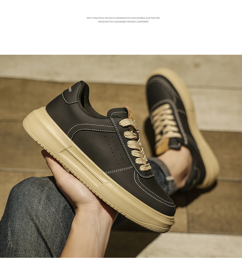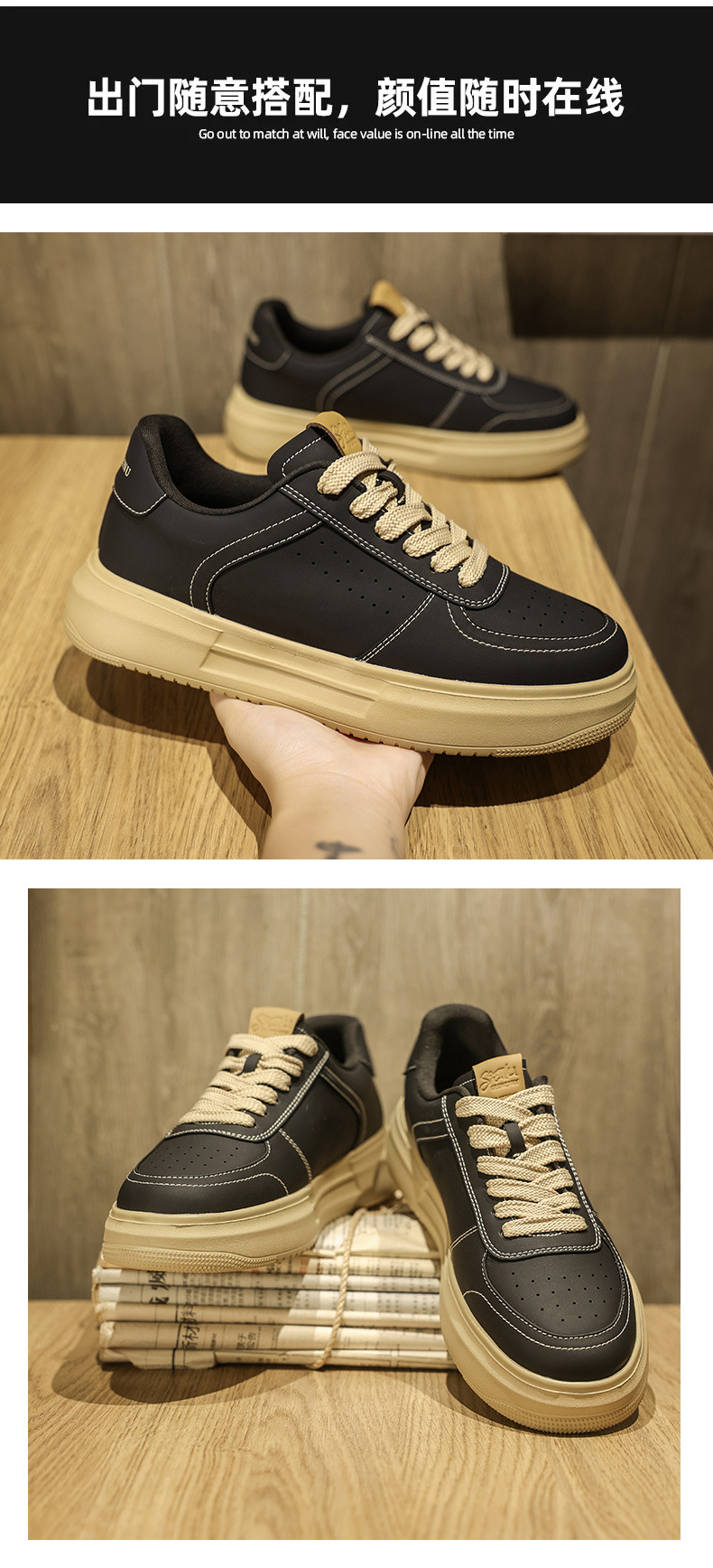 남성 신발 가을 모든 매치 화이트 스니커즈 패션 남성 캐주얼 가죽 신발 스포츠 두꺼운 밑창 증가 맥퀸 화이트 트렌디 신발스토어 가기