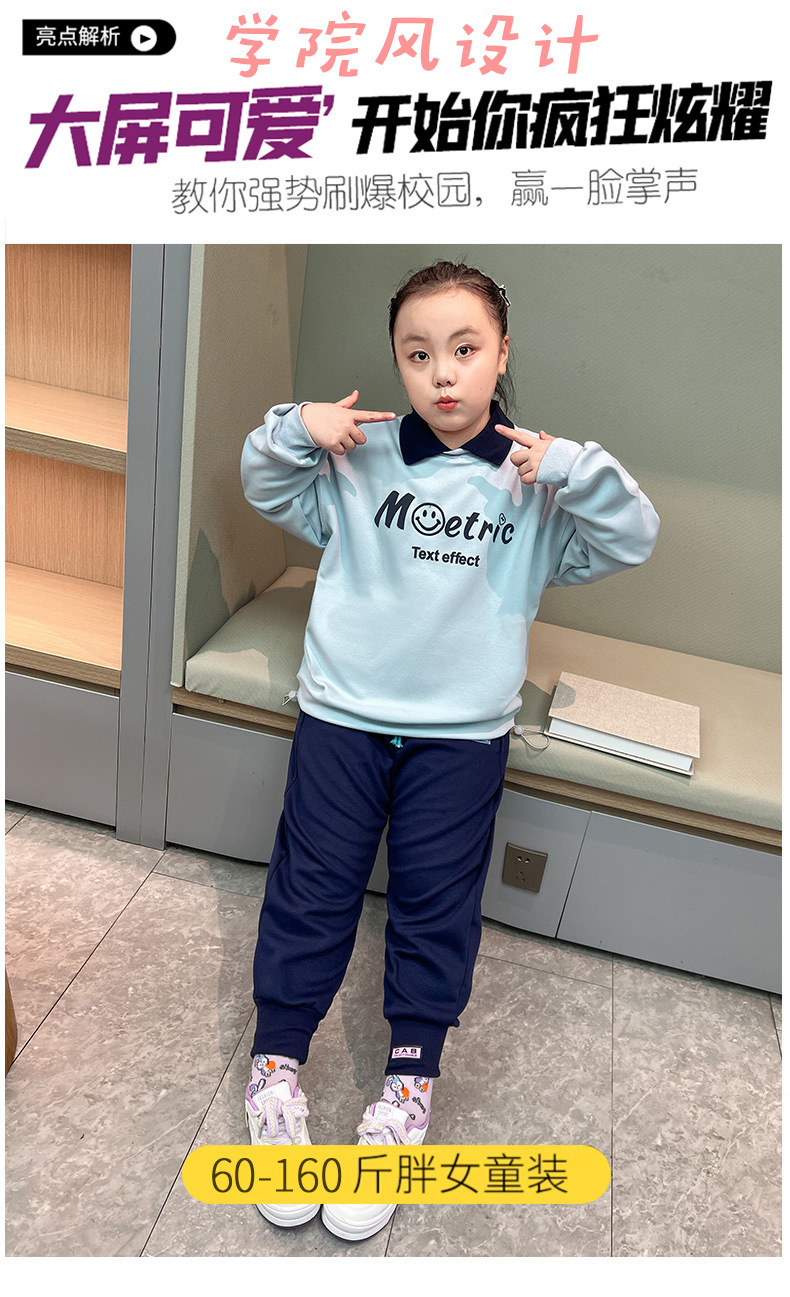 뚱뚱한 여자 긴 소매 바지 투피스 세트 기모 스포츠 두꺼운 어린이 가을과 겨울 느슨한 플러스 사이즈 뚱뚱한 판 어린이 의류 12