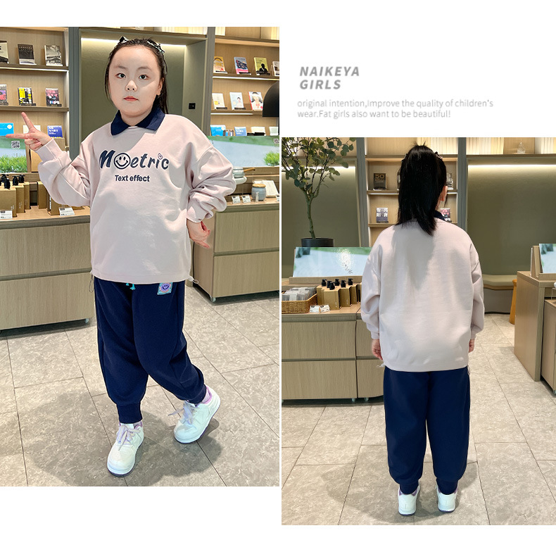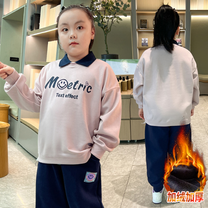 뚱뚱한 여자 긴 소매 바지 투피스 세트 기모 스포츠 두꺼운 어린이 가을과 겨울 느슨한 플러스 사이즈 뚱뚱한 판 어린이 의류 12스토어 가기