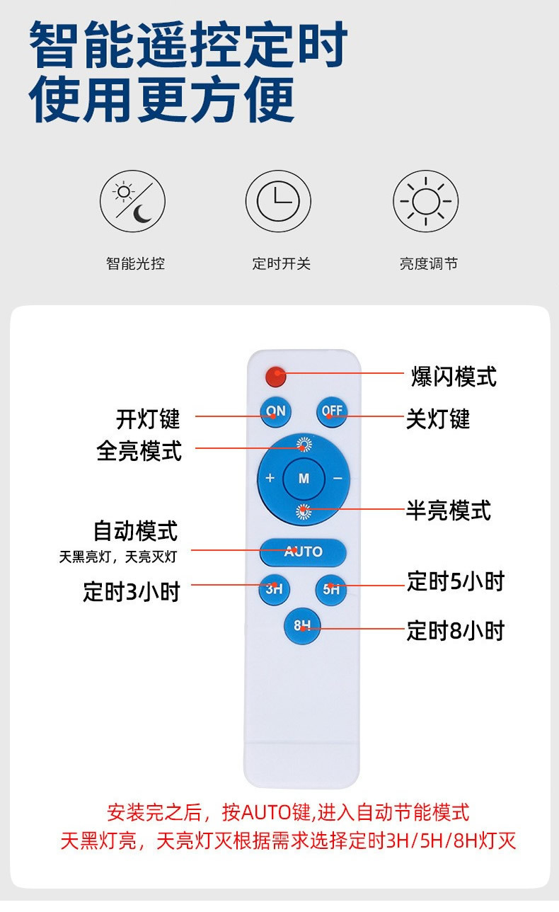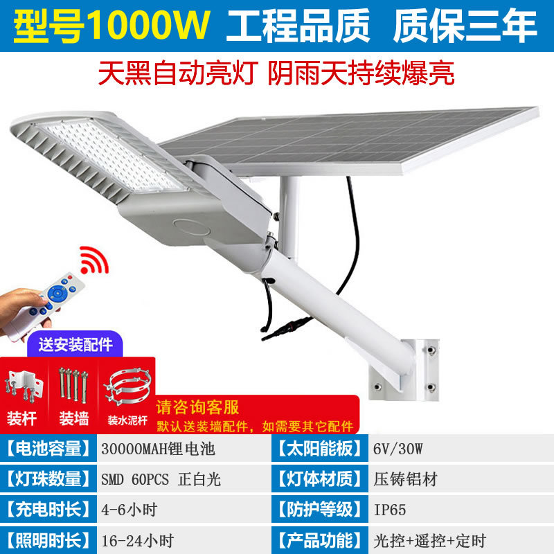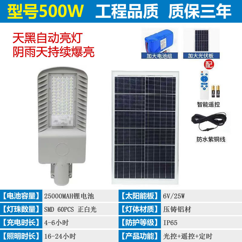 태양광 가로등, 매우 밝은 고출력 실외 조명, 알루미늄 쉘, 방수, 시설 공학 모델, 6m 신형 농촌 정원 조명