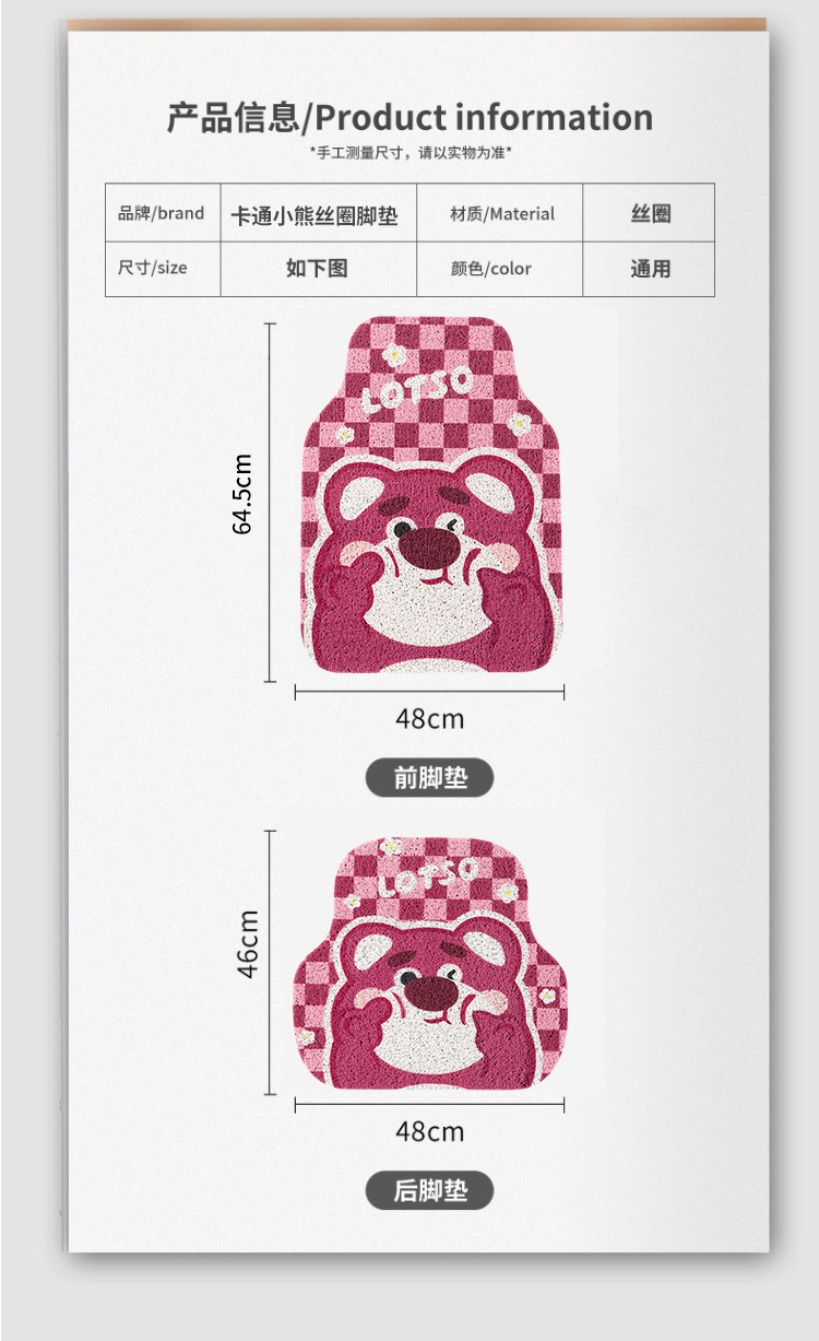 만화 귀여운 곰 자동차 매트 실크 링 자동차 매트 범용 미끄럼 방지 오염 방지 매트 내마모성 및 청소하기 쉬운스토어 가기