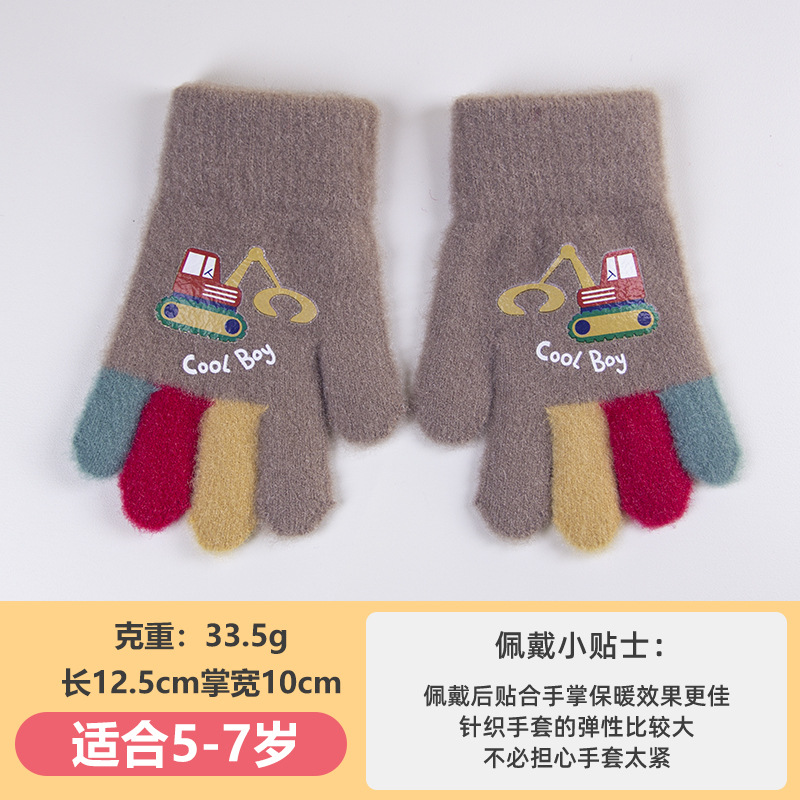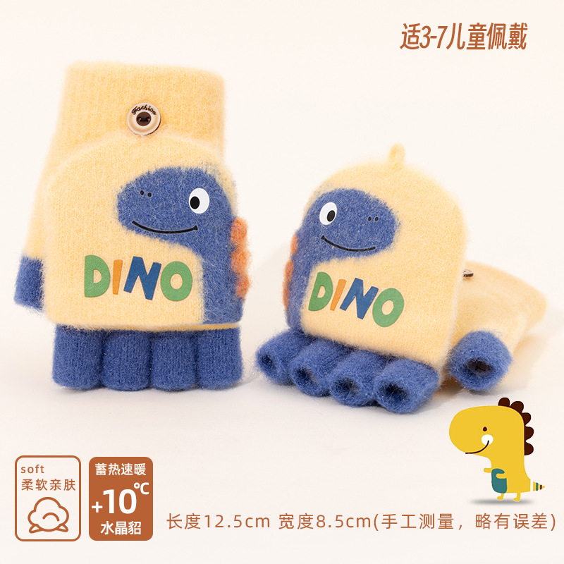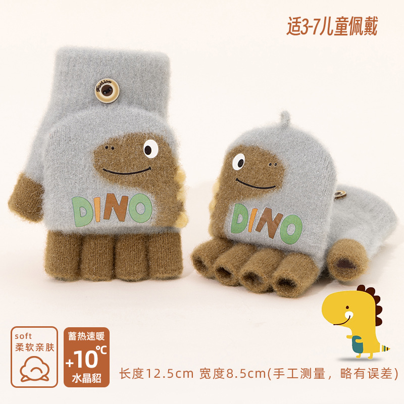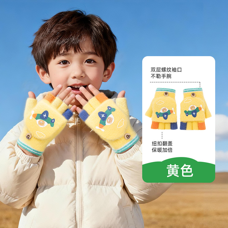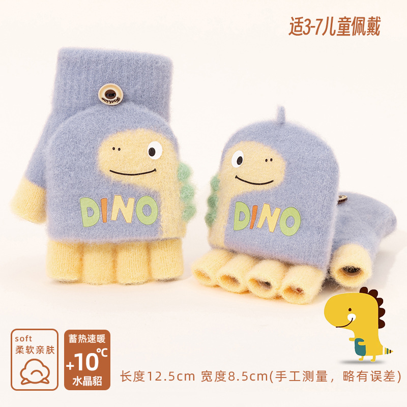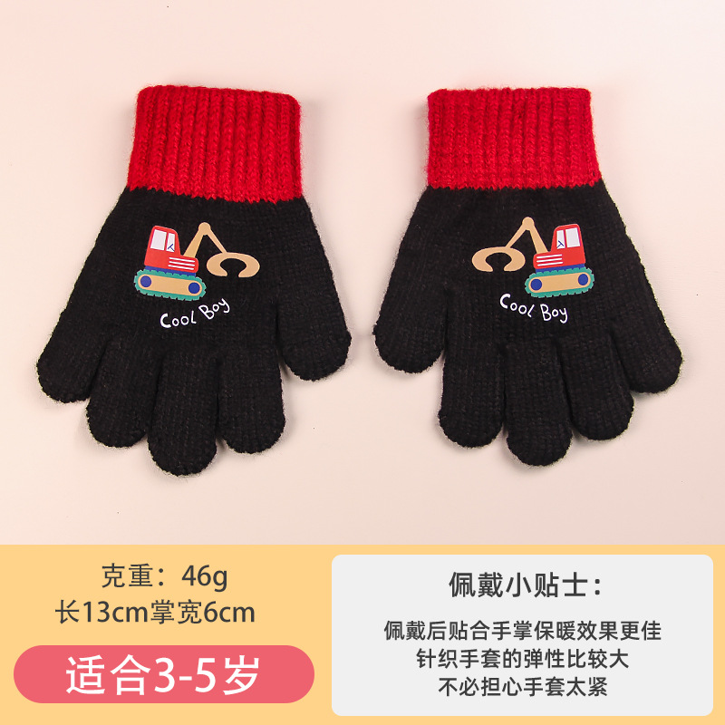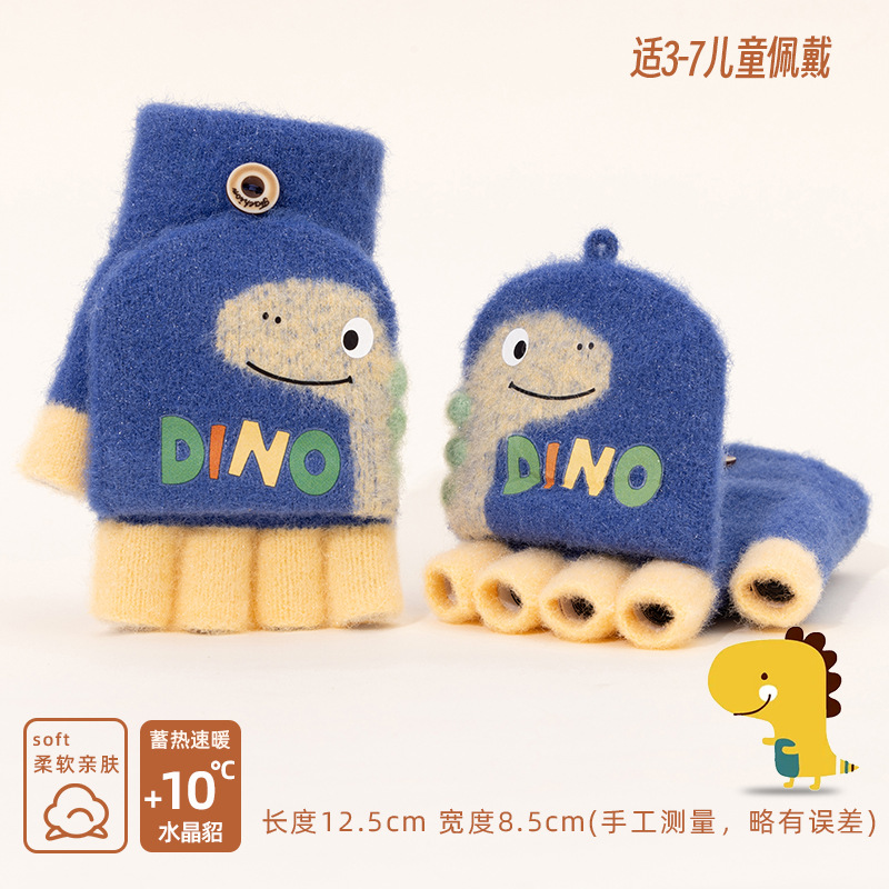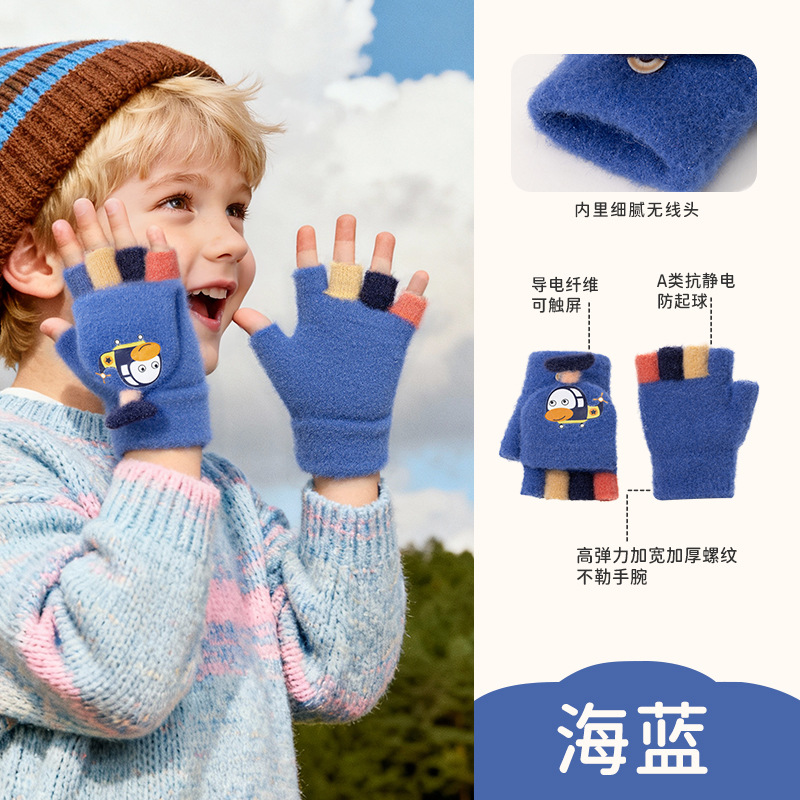 굴착기 소년 겨울 만화 귀여운 유치원 반손가락 니트 울 방한 보온 어린이 플립업 장갑