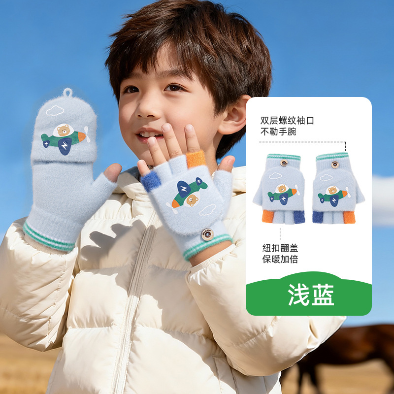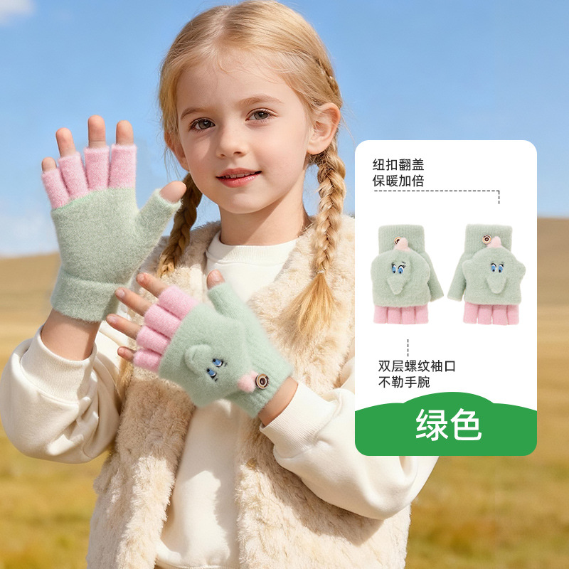 儿童手套女冬季保暖加厚针织漏二指学生户外防寒触屏男孩手套定制儿童手套冬季女韩版学生写字半指翻盖露指户外防寒保暖男手套定制儿童手套女孩冬季五指针织毛线保暖骑行防寒加厚男小学生手套定制