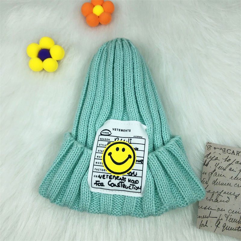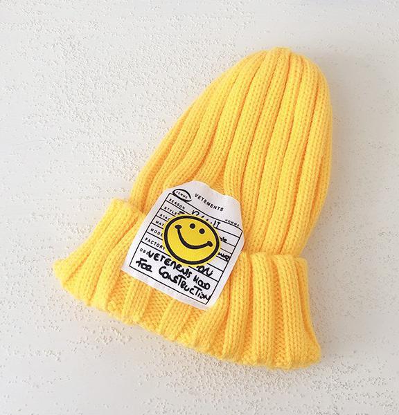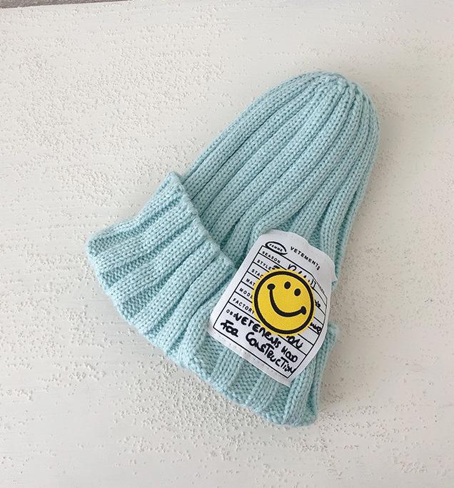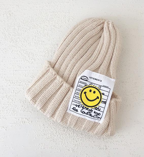 어린이 니트 모자 귀여운 스마일 빅 라벨 울 모자 가을과 겨울 얇은 풀오버 캡 AliExpress 소년과 소녀와 동일