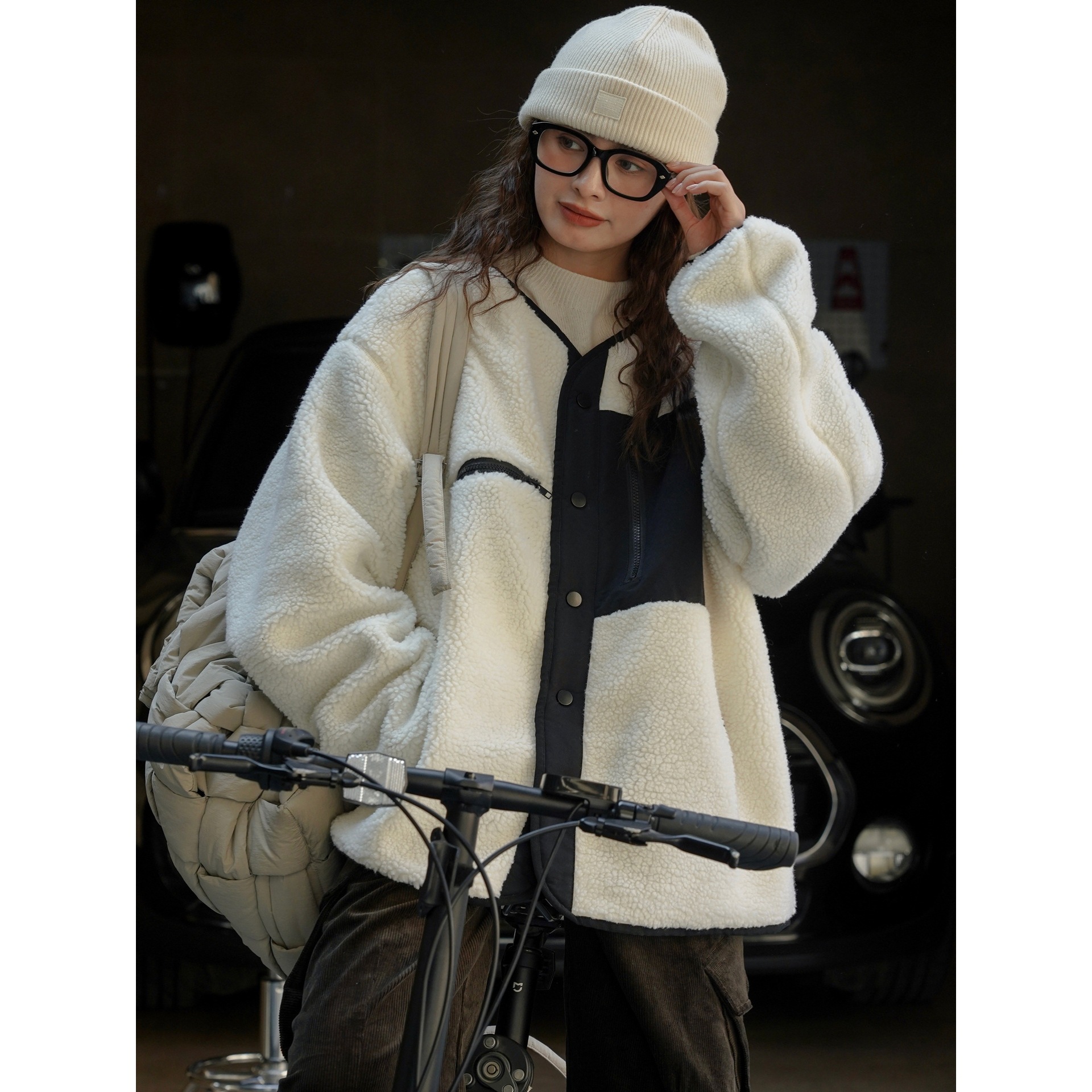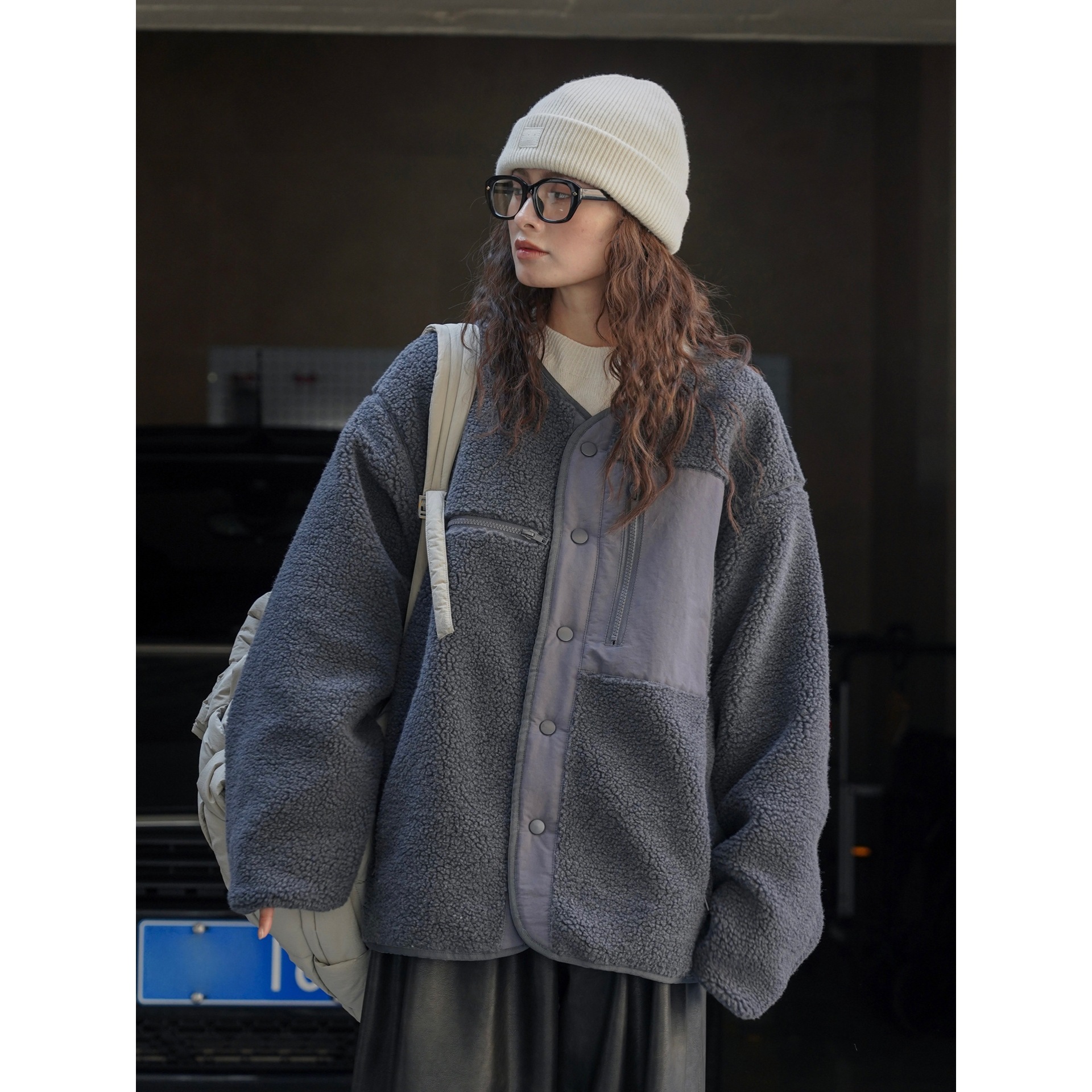 루 푸 겨울 새로운 일본 캐주얼 툴링 스타일 양고기 울 재킷 느슨한 슬리밍 부드러운 피부 친화적 인 재킷스토어 가기