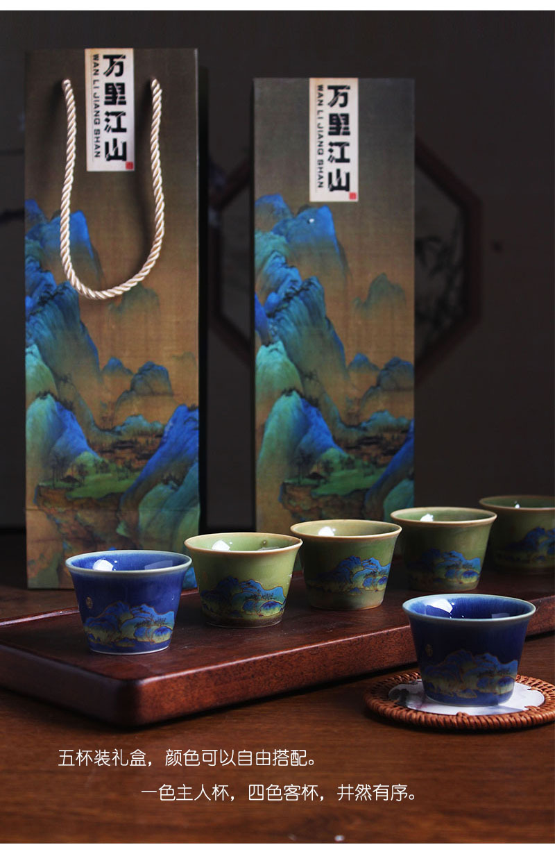 Qianli 마운틴 티 시음 컵 마스터 컵 개인 차 시음 컵 차 양조 쿵푸 차 세트 차 컵 선물 상자 동반스토어 가기
