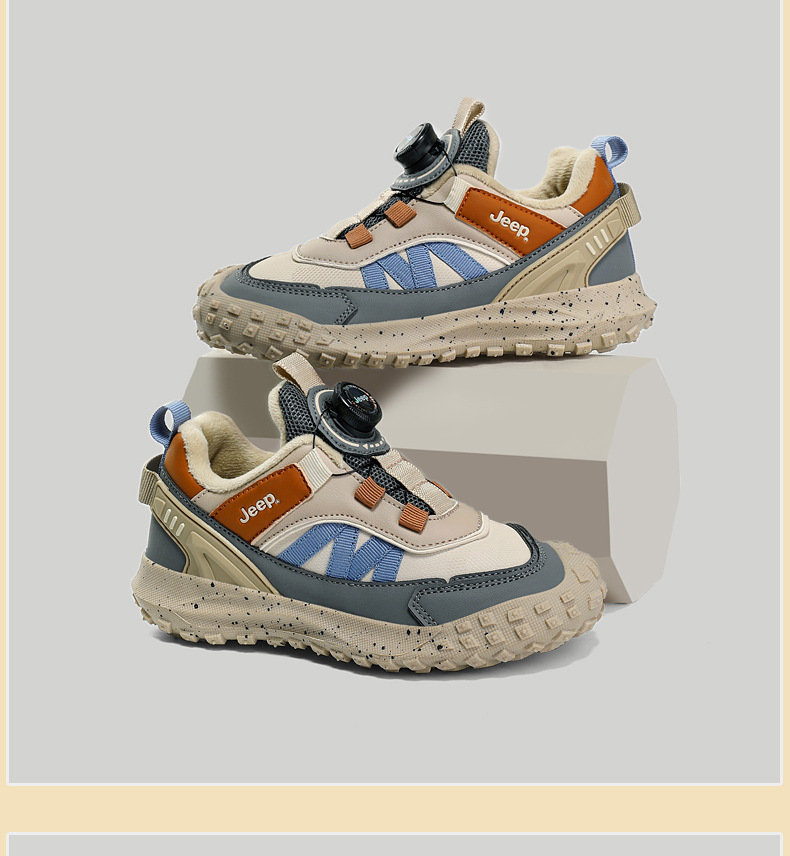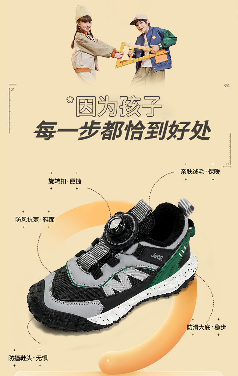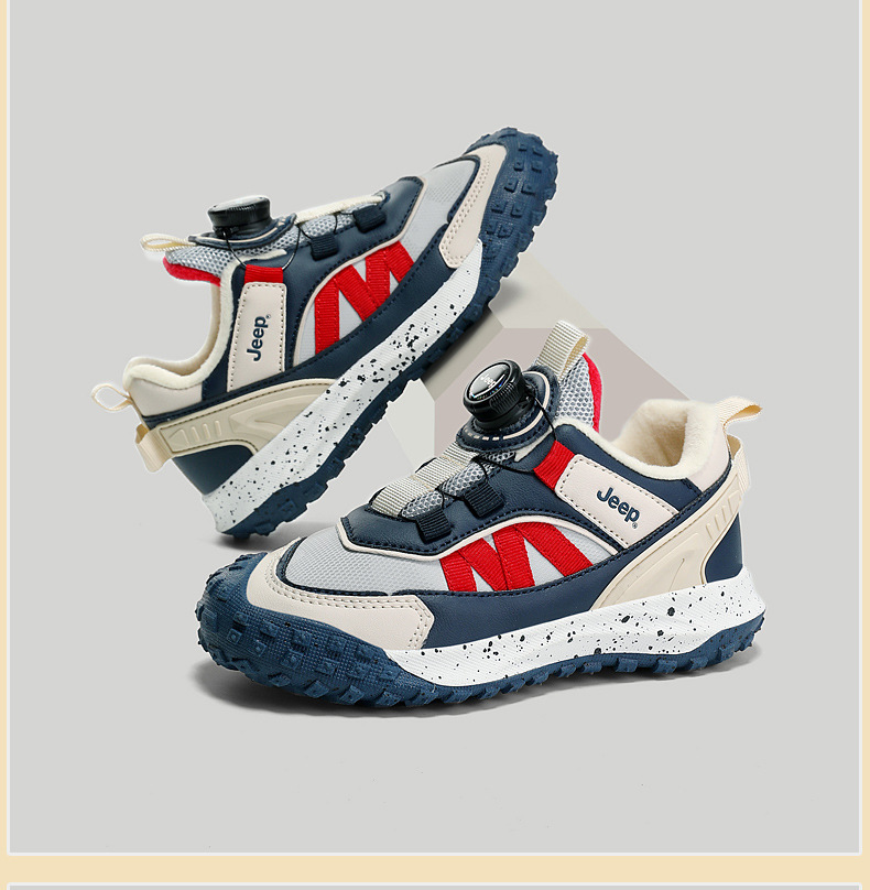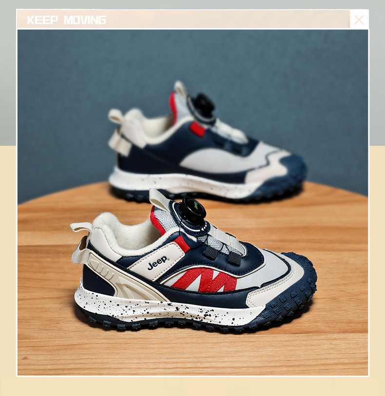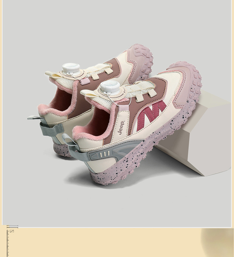 지프 소녀 운동화 2023 가을과 겨울 새로운 회전 버튼 신발 따뜻한 기모 면화 패딩 신발 방수 경량 아동용 신발