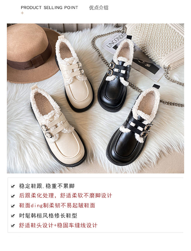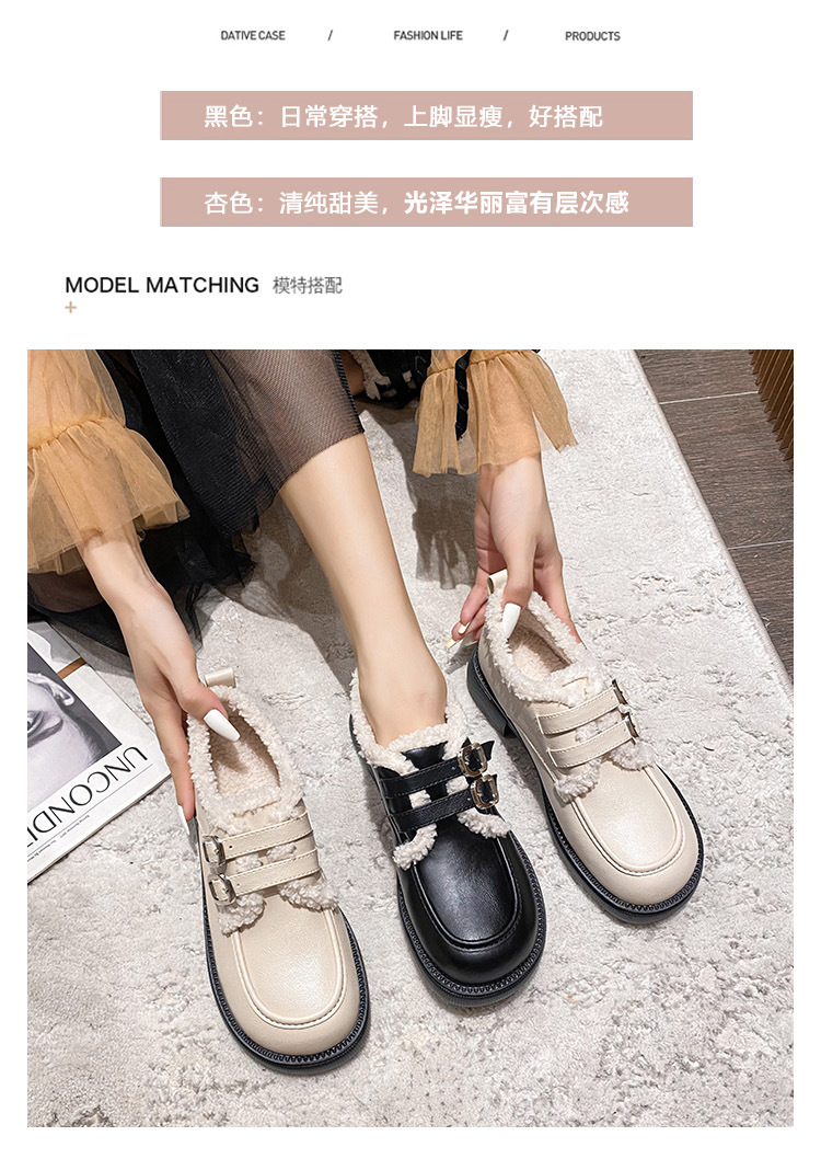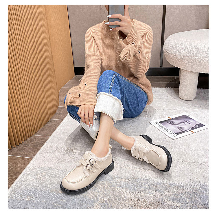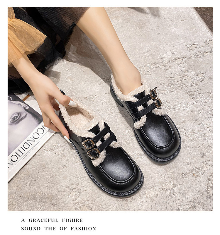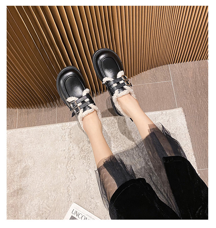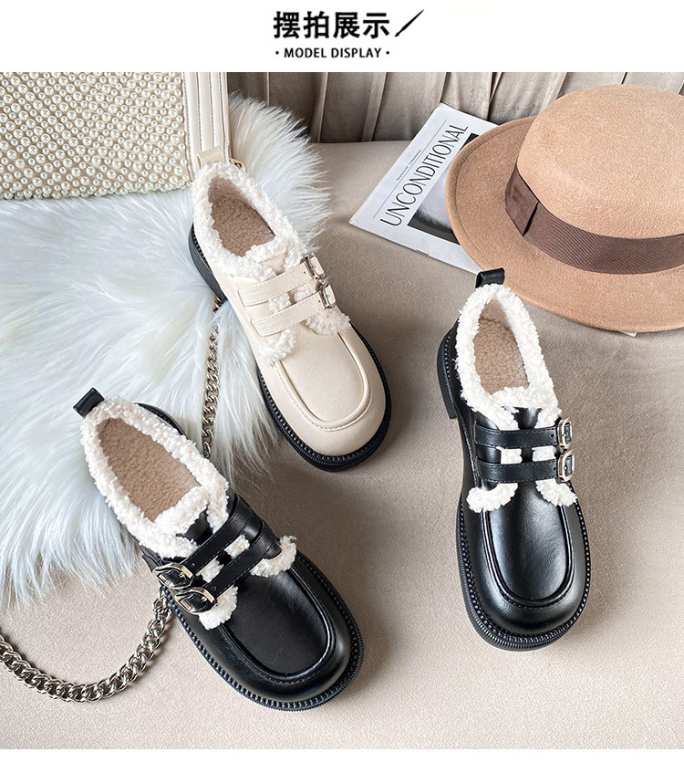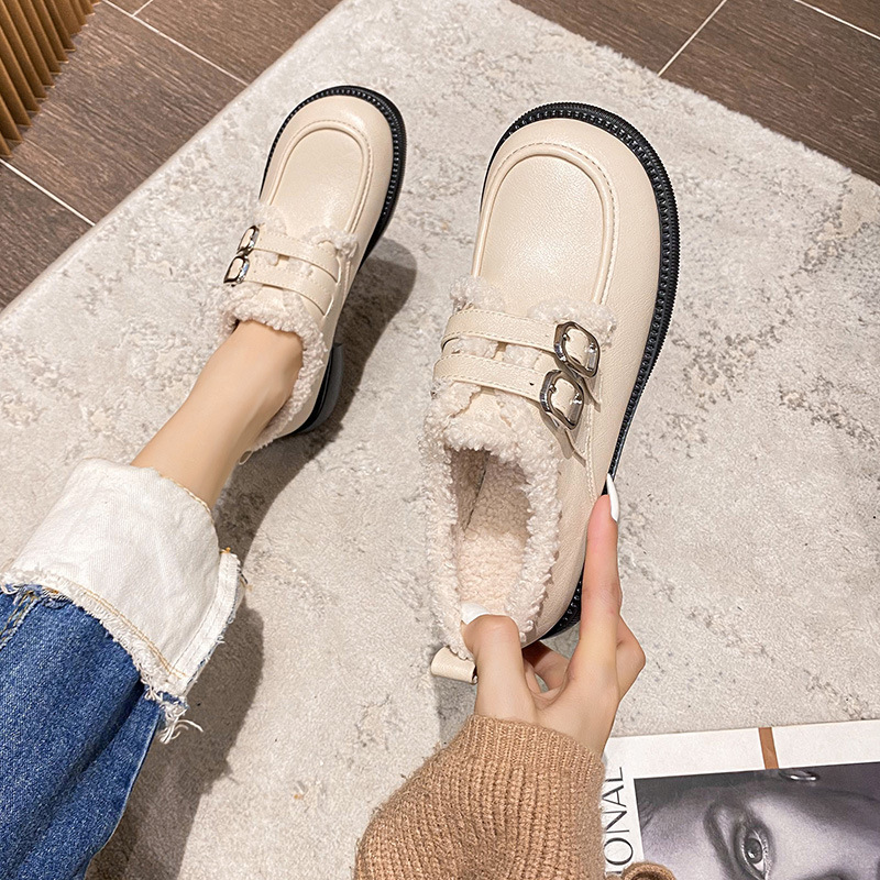 여성용 모피 신발 가을 겨울 신상 두꺼운 밑창 로퍼 플러스 벨벳 보온 두꺼운 면화 신발 영국 스타일 여성용 가죽 신발 도매