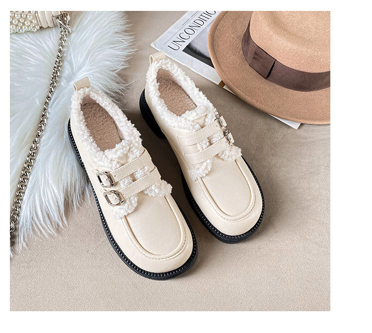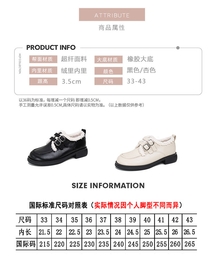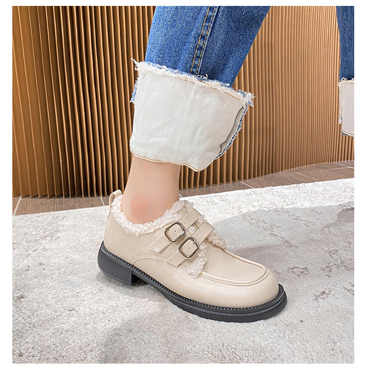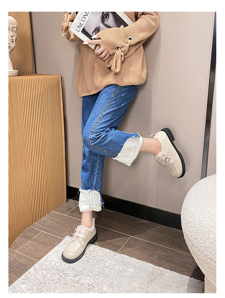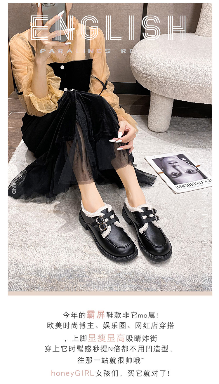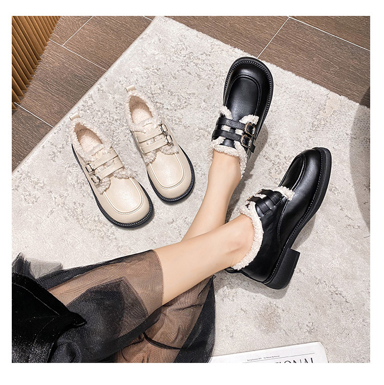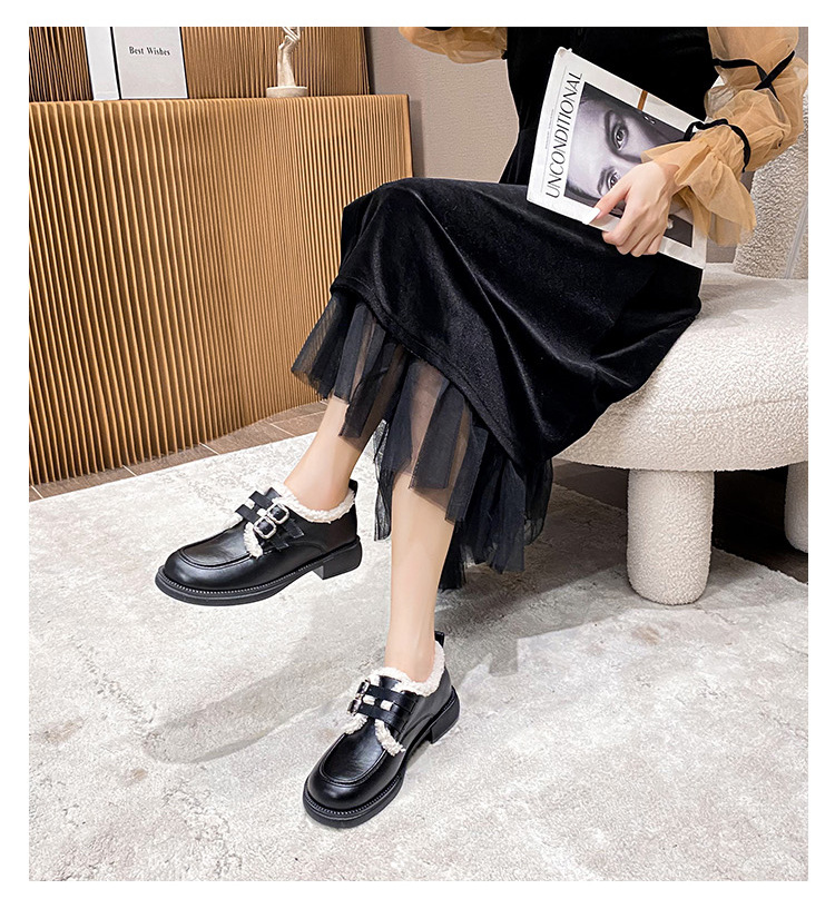 여성용 모피 신발 가을 겨울 신상 두꺼운 밑창 로퍼 플러스 벨벳 보온 두꺼운 면화 신발 영국 스타일 여성용 가죽 신발 도매