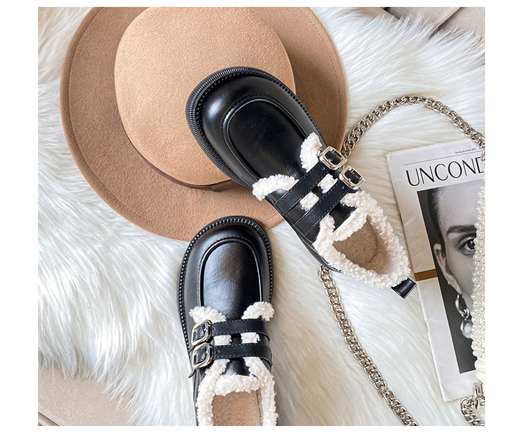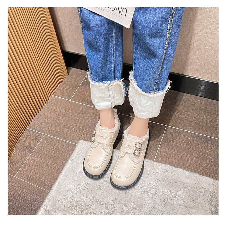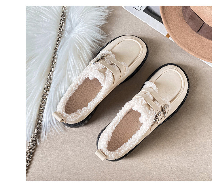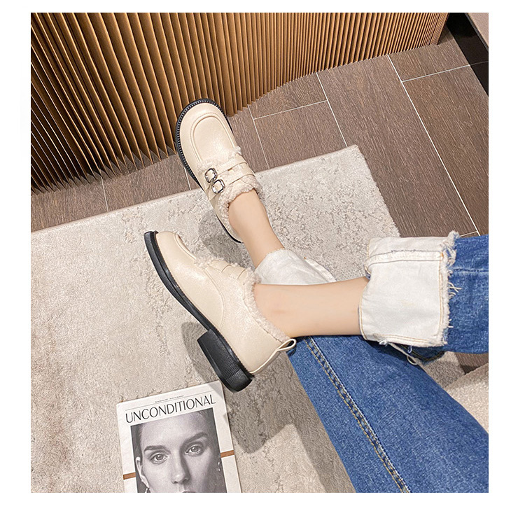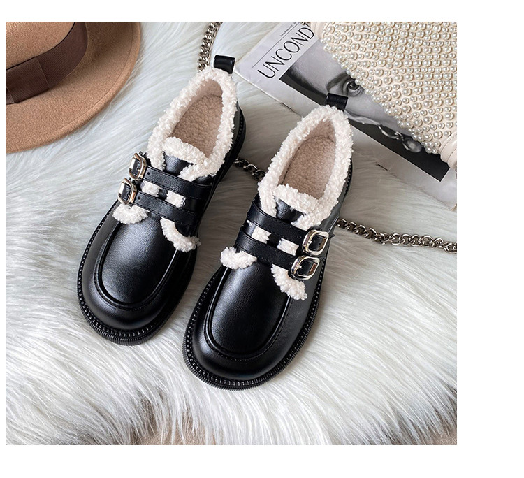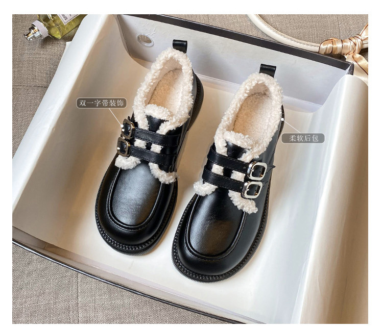 여성용 모피 신발 가을 겨울 신상 두꺼운 밑창 로퍼 플러스 벨벳 보온 두꺼운 면화 신발 영국 스타일 여성용 가죽 신발 도매스토어 가기