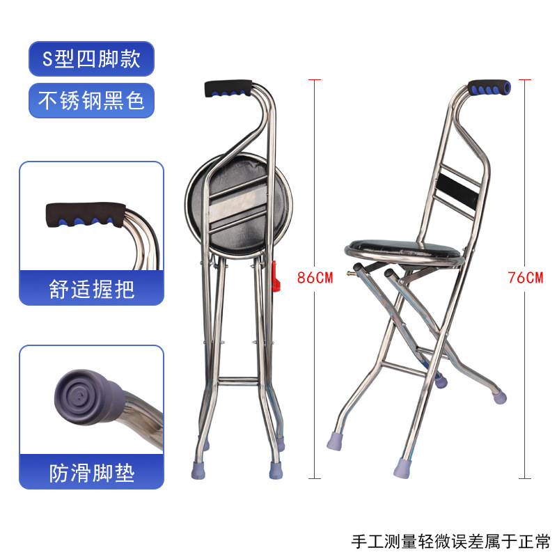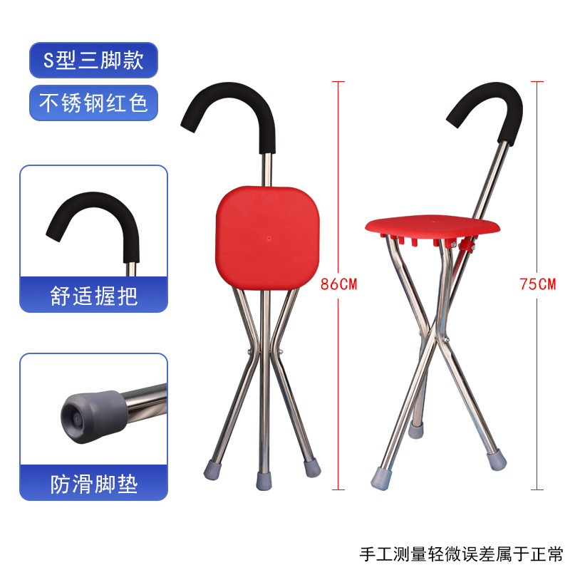 노인용 목발 지팡이 의자 다기능 벨트 앉아있는 경량 미끄럼 방지 목발 노인용 3 족 접이식 의자