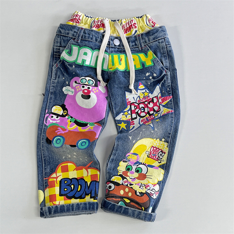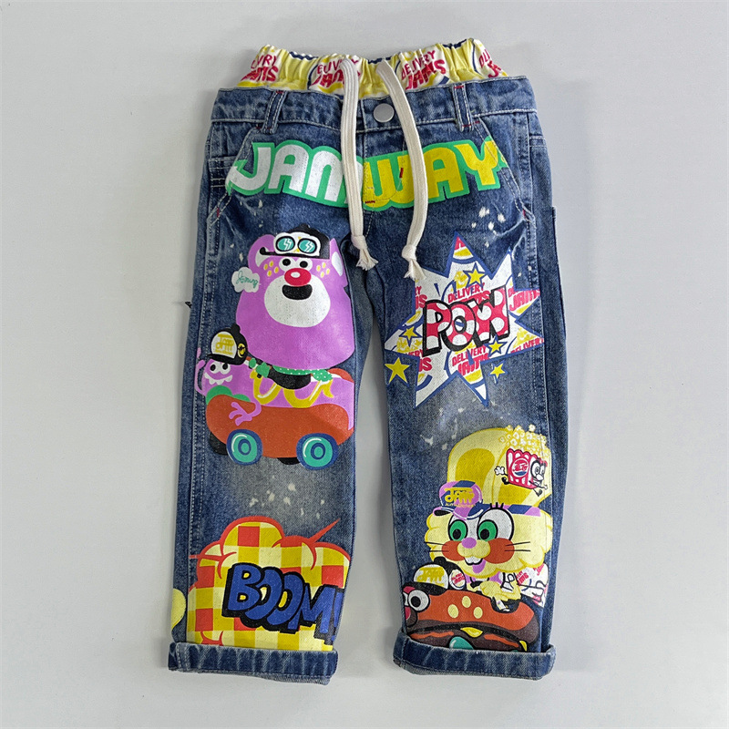 [재고] 일본 중세 유행 어린이 Xiaozhong 중공업 어린이 GAM 낙서 청바지