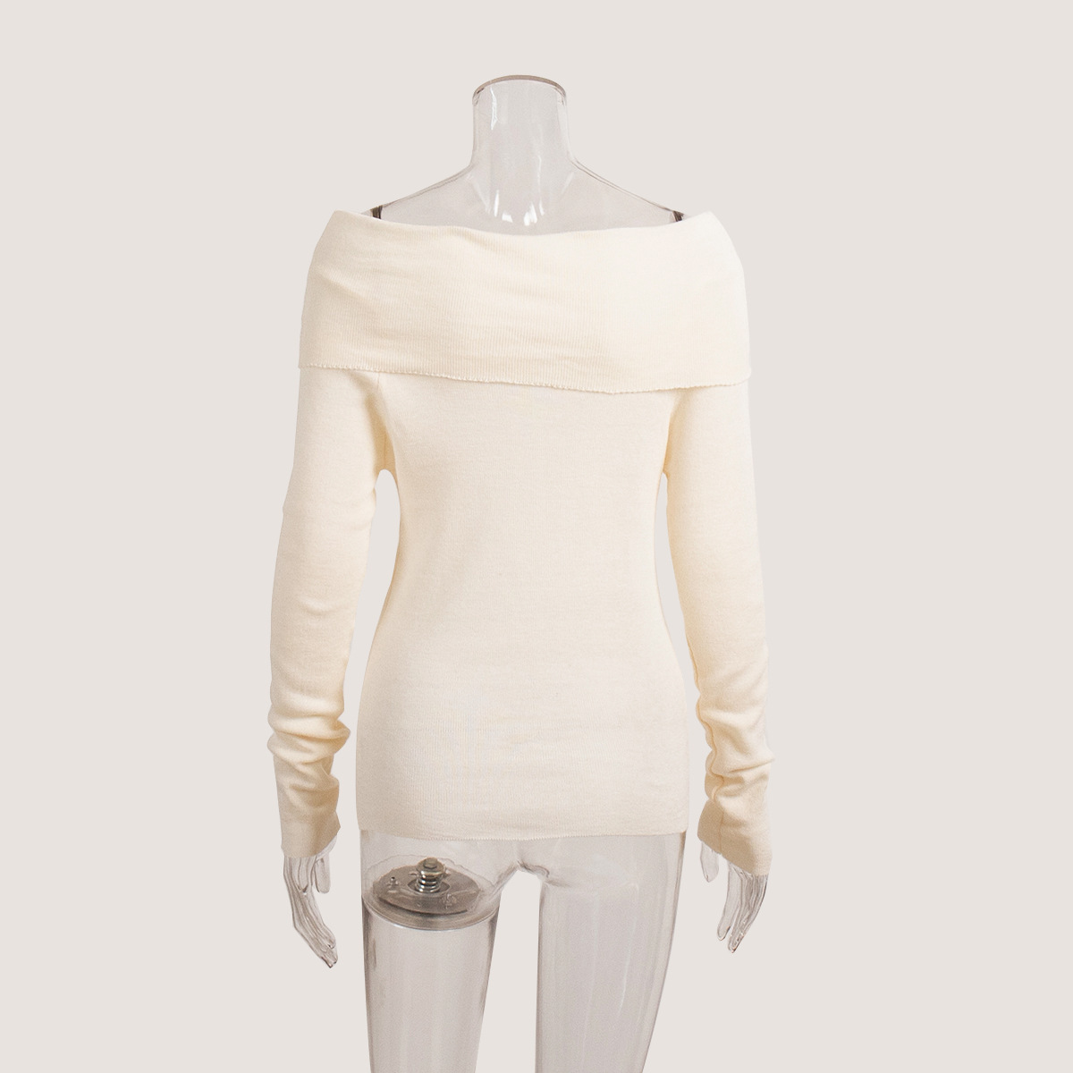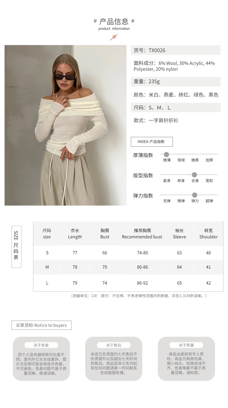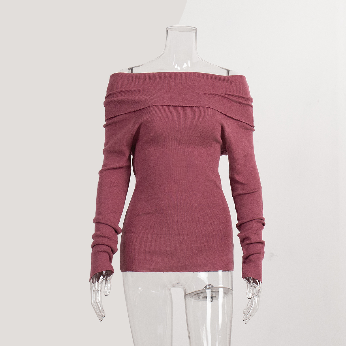 크로스보더 오프숄더 스웨터 유럽과 미국 2025 봄 여성스러운 슬림 솔리드 컬러 풀오버 원라인 칼라 긴팔 스웨터스토어 가기