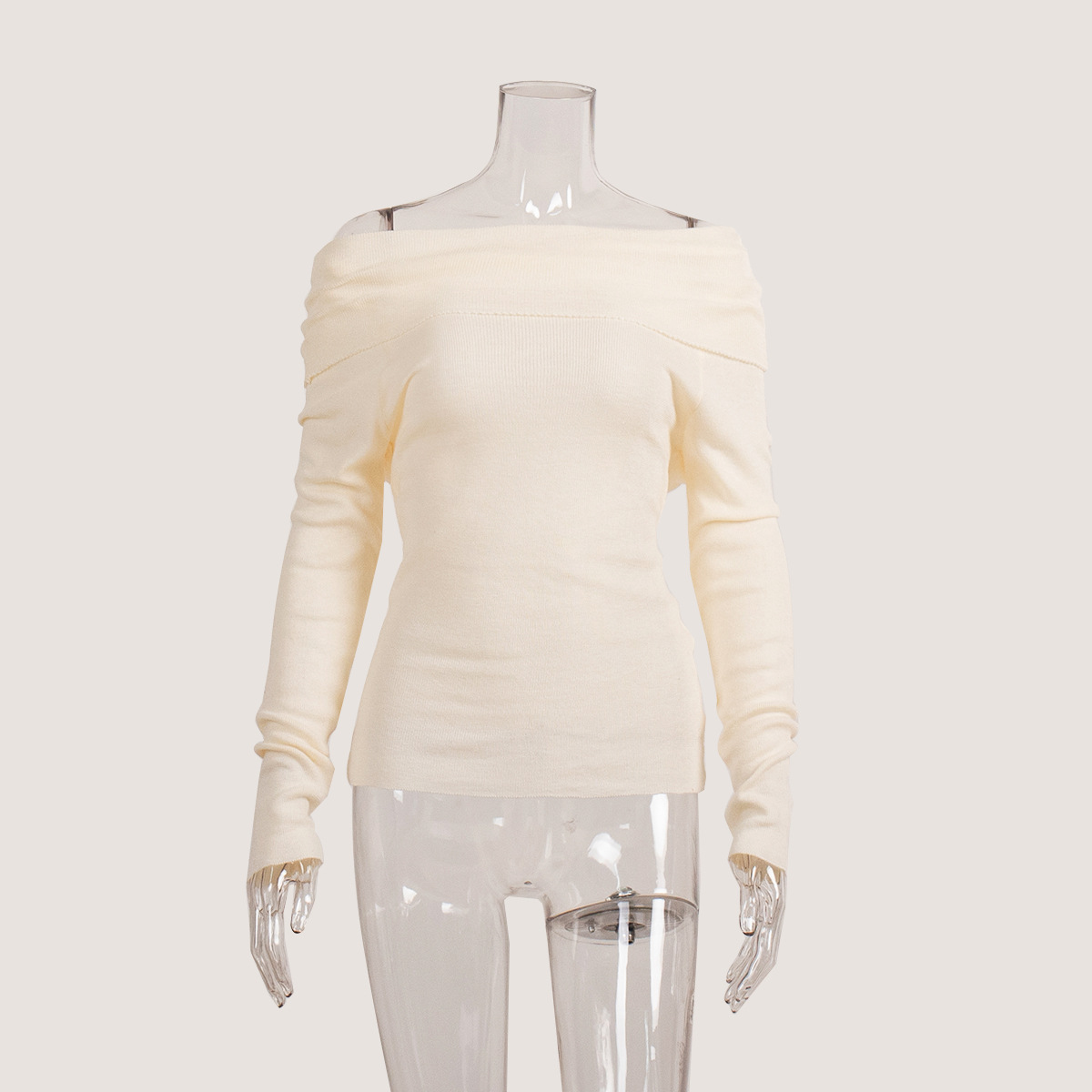 크로스보더 오프숄더 스웨터 유럽과 미국 2025 봄 여성스러운 슬림 솔리드 컬러 풀오버 원라인 칼라 긴팔 스웨터