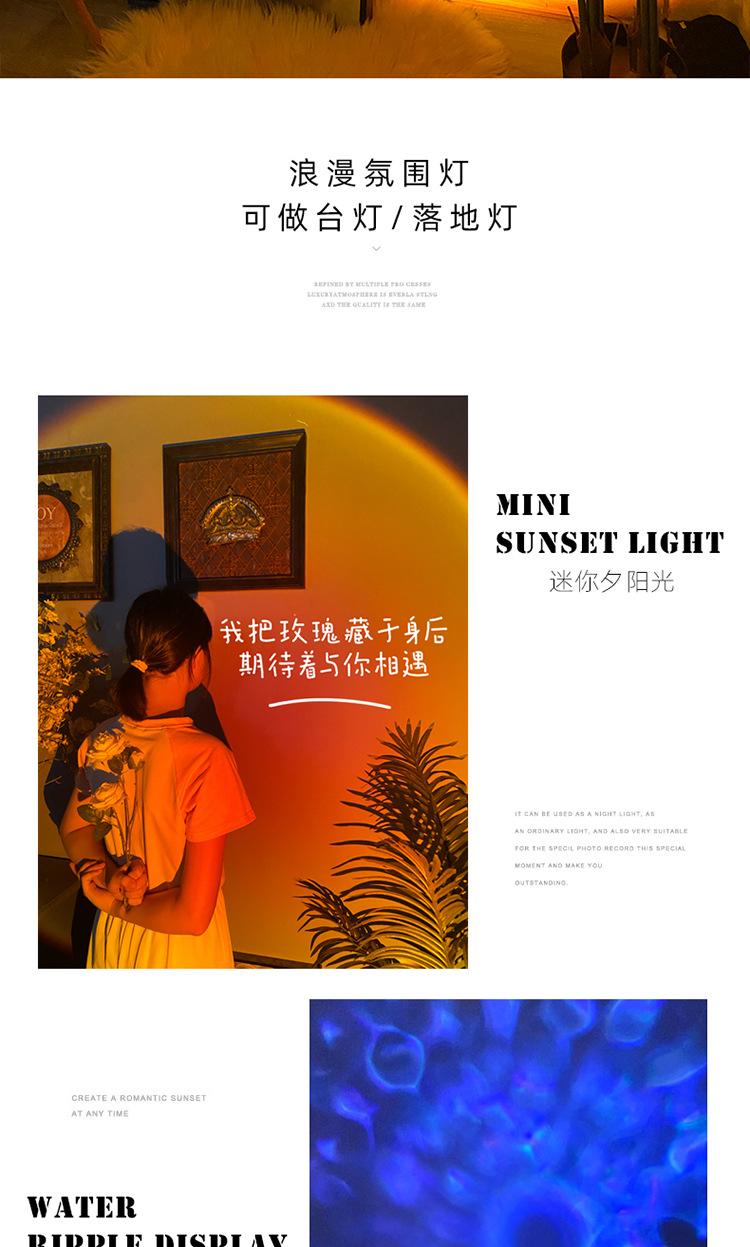 인터넷 연예인 동적 물 리플 분위기 램프 테이블 램프 거실 플로어 램프 침실 야간 조명 일몰 램프 선물스토어 가기