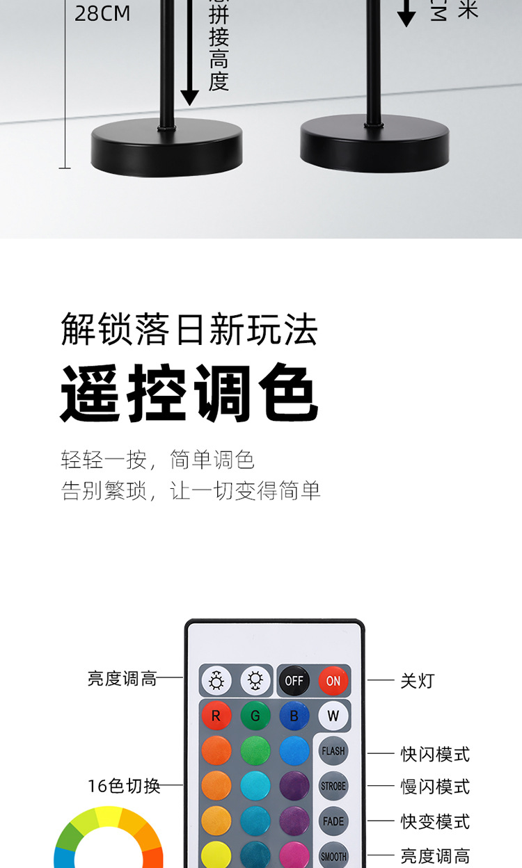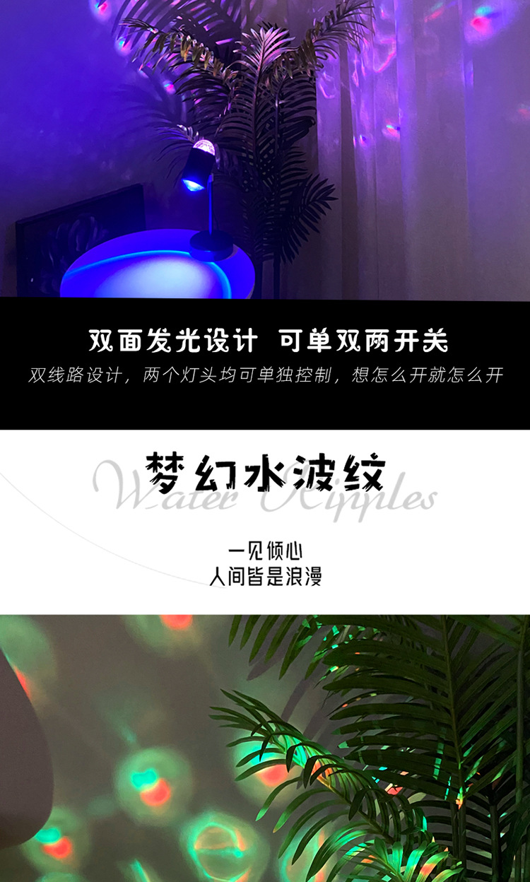 • 16 색 RGB 물 리플 + 일몰 빨강 (USB 플러그)