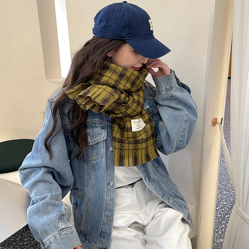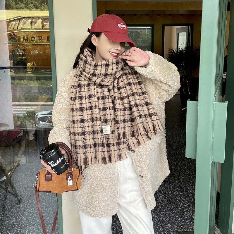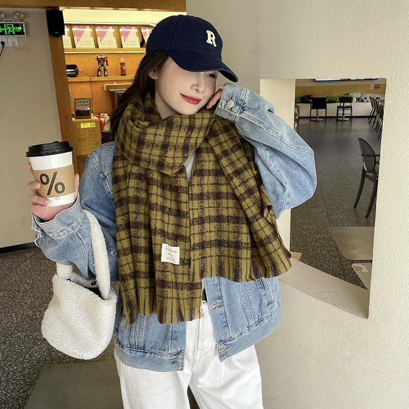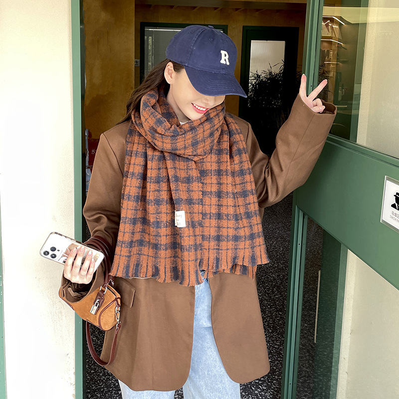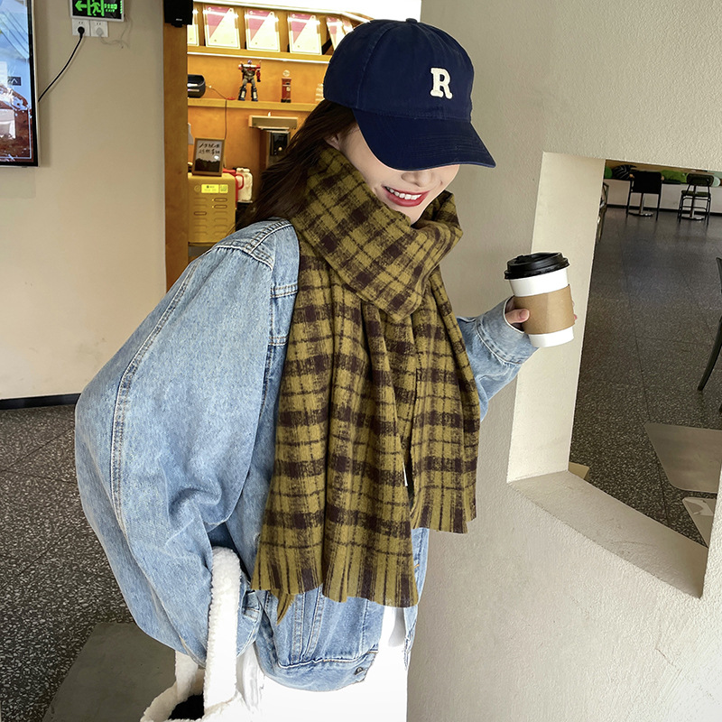 클래식 격자 무늬 스카프 여성의 일본과 한국 부드러운 왁스 색 격자 무늬 숄 커플 두꺼운 따뜻한 짧은 목걸이 남성 도매스토어 가기