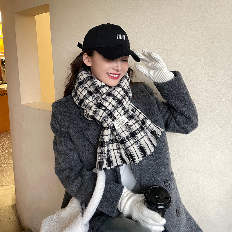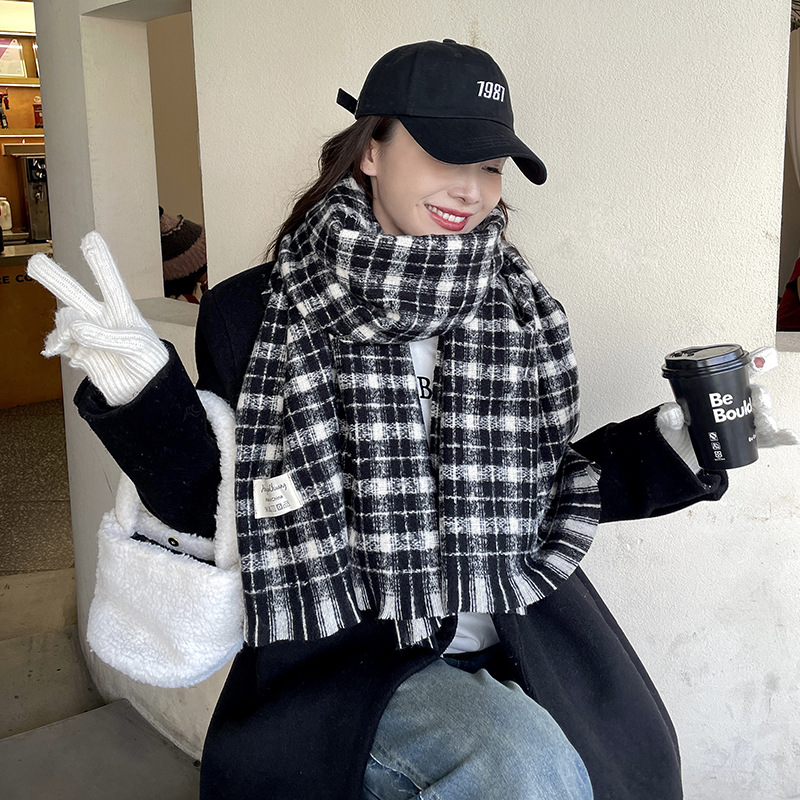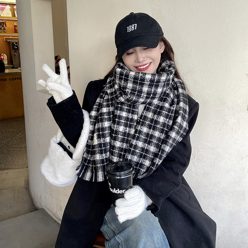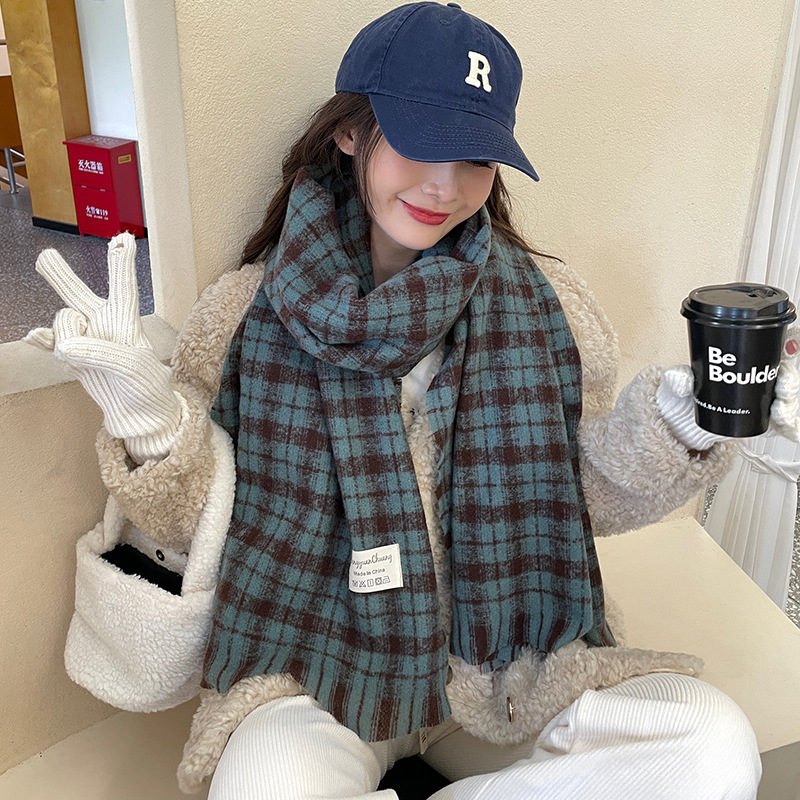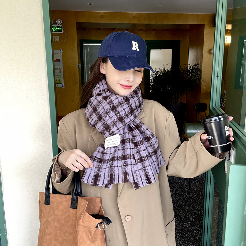 클래식 격자 무늬 스카프 여성의 일본과 한국 부드러운 왁스 색 격자 무늬 숄 커플 두꺼운 따뜻한 짧은 목걸이 남성 도매스토어 가기