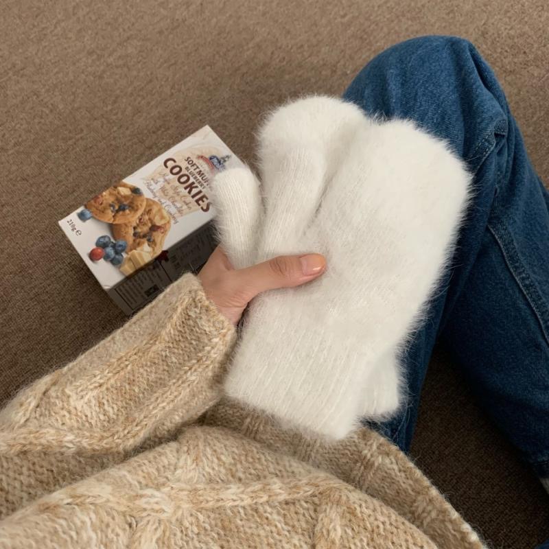 장갑 여자의 겨울 귀여운 학생 따뜻한 높은 가치 부동액 사이클링 모조 밍크 머리 한국 스타일 기모 두꺼운 손가락 가방