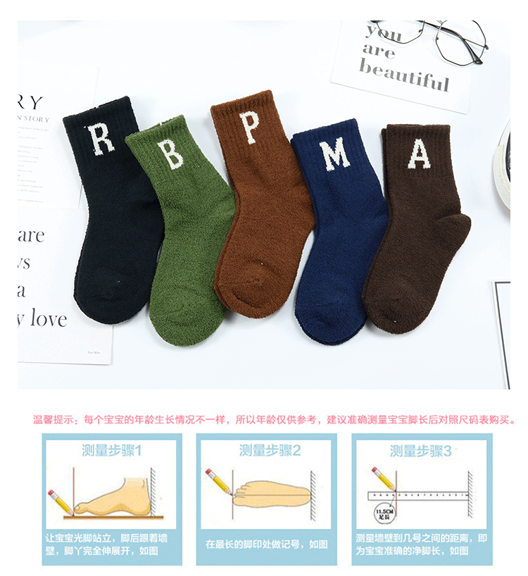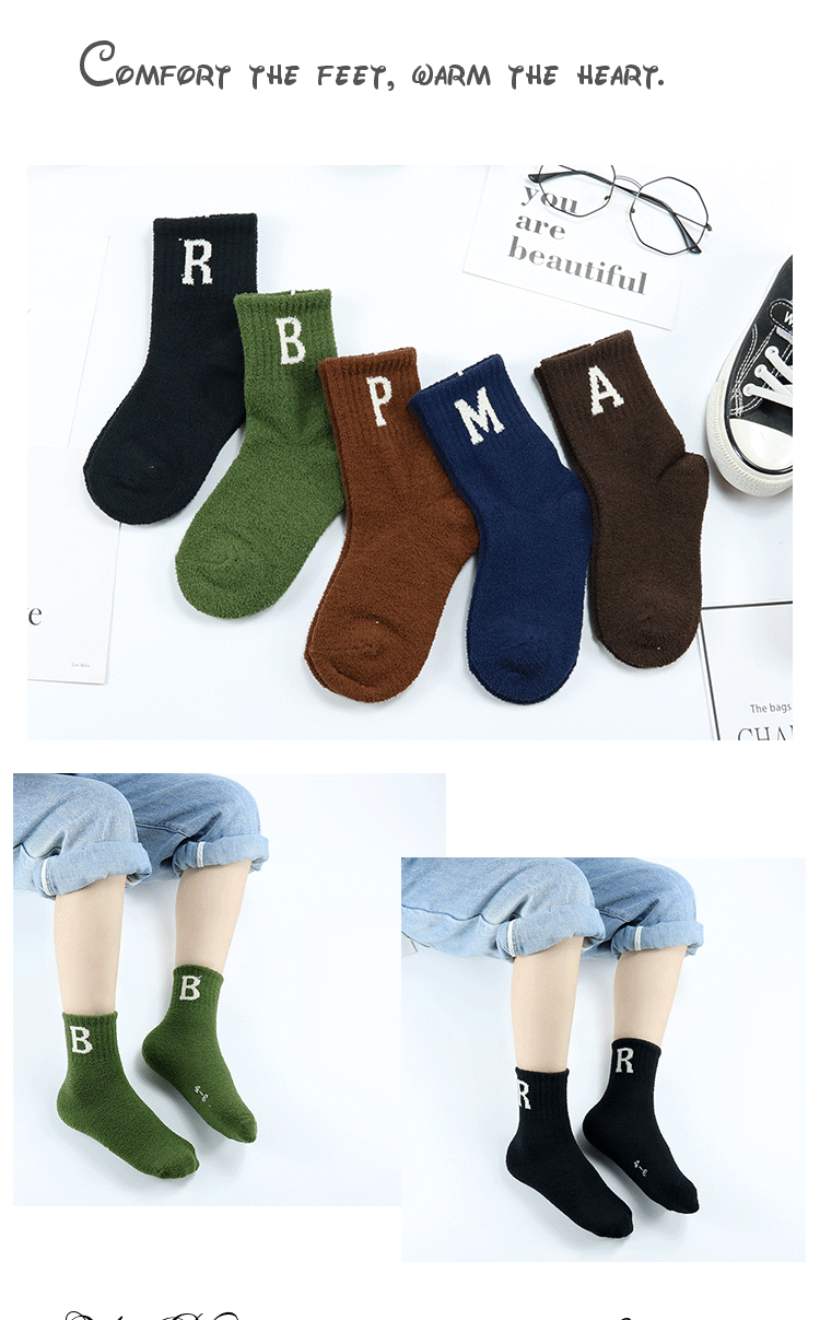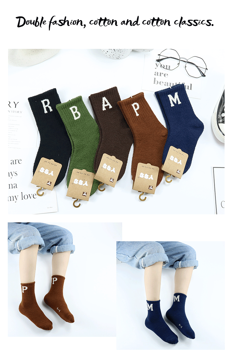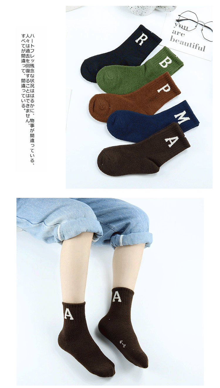 이순신 쌍 어린이 양말 겨울 새로운 두꺼운 한국식 편지 중간 길이 양말 양면 벨벳 따뜻한 푹신한 어린이 양말 유행스토어 가기