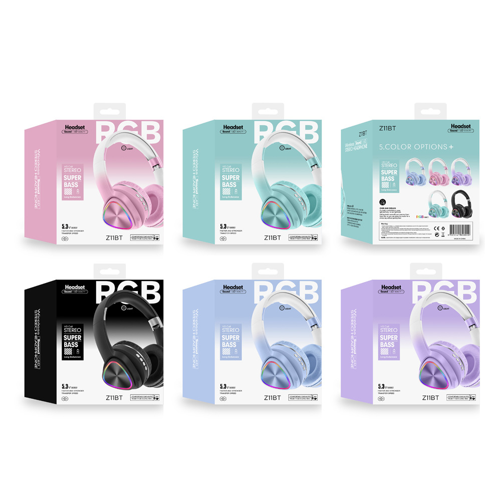 Z11 새로운 RGB 발광 헤드셋 블루투스 헤드셋 그라디언트 게임 비디오 앵커 무선 헤드셋 공장 도매스토어 가기