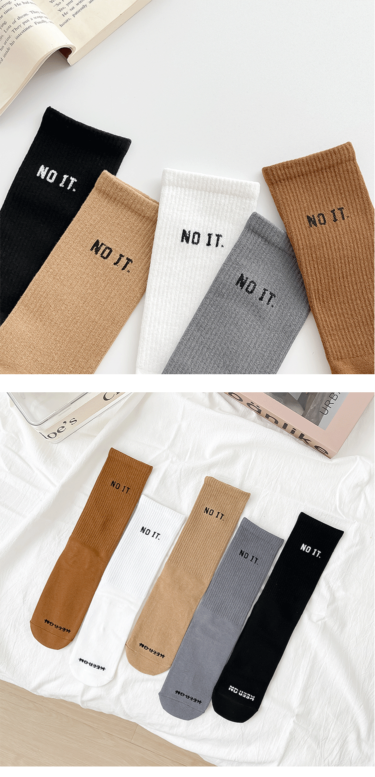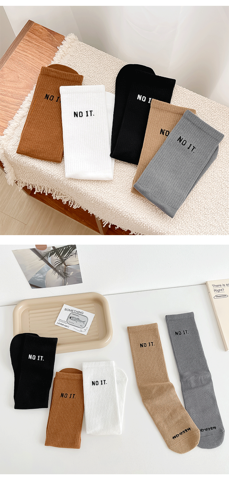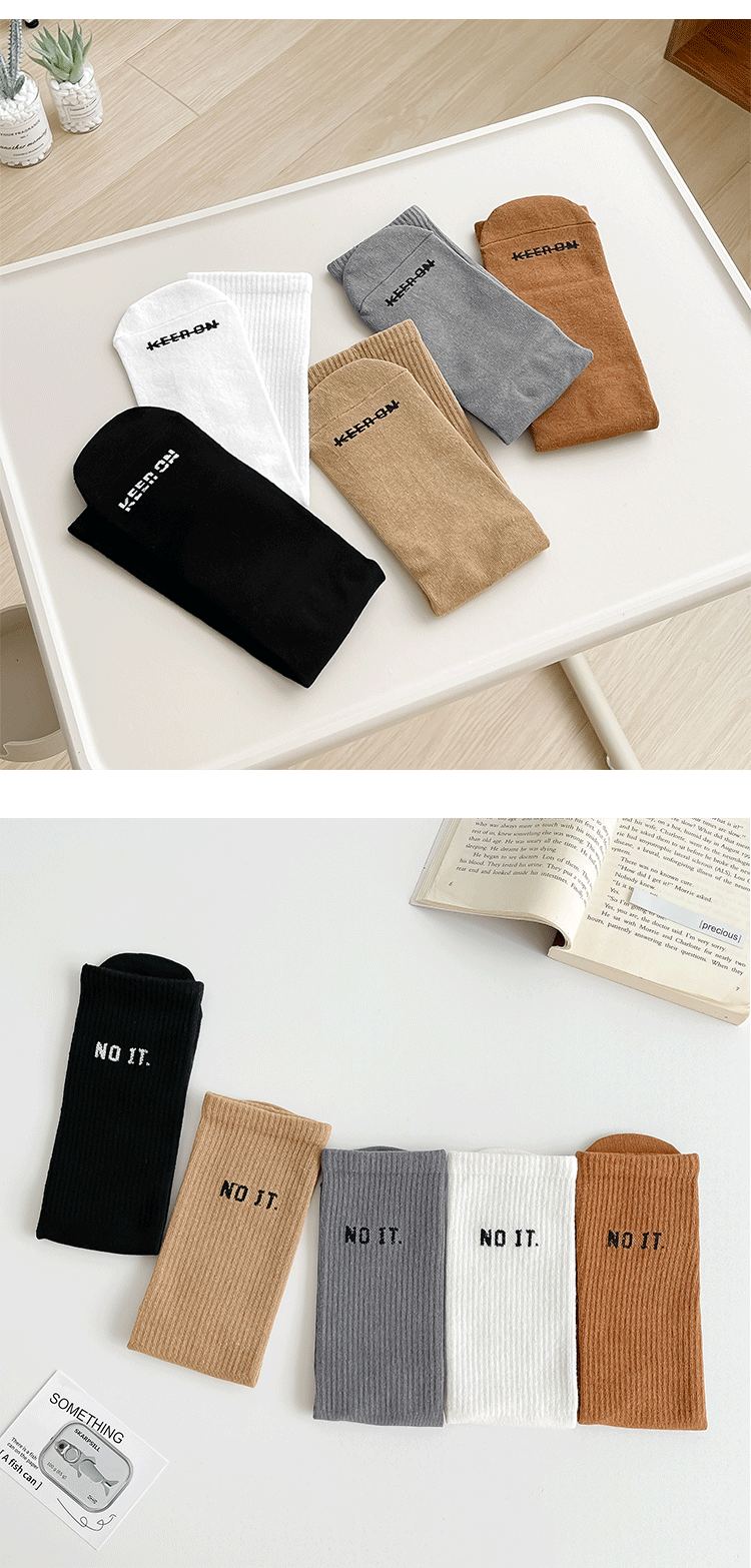 Ji Four 코끼리 양말 여성 가을과 겨울 새로운 한국식 편지 굽이 없는 스타킹 빗질 면 학생 발 양말 쌓인 스타킹스토어 가기