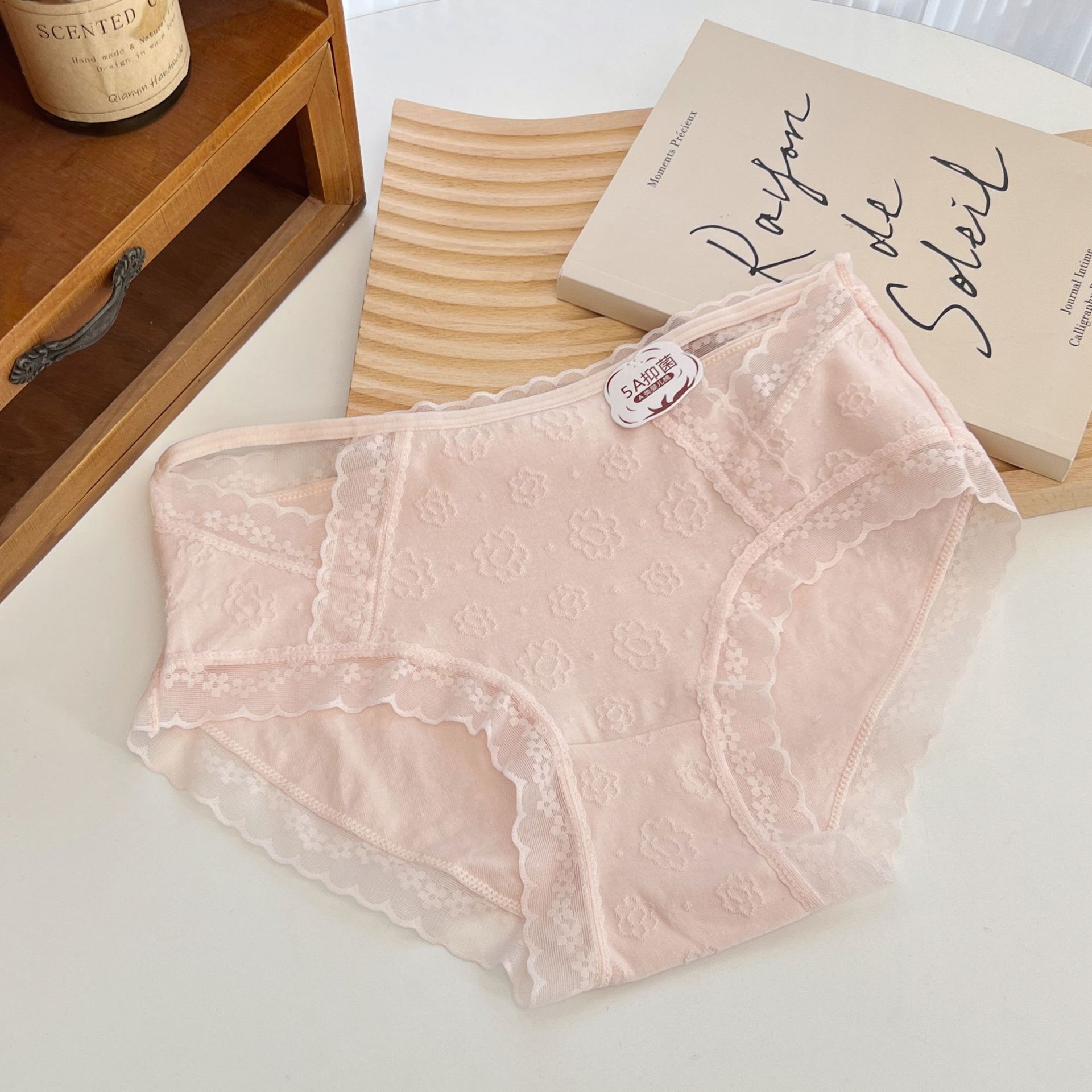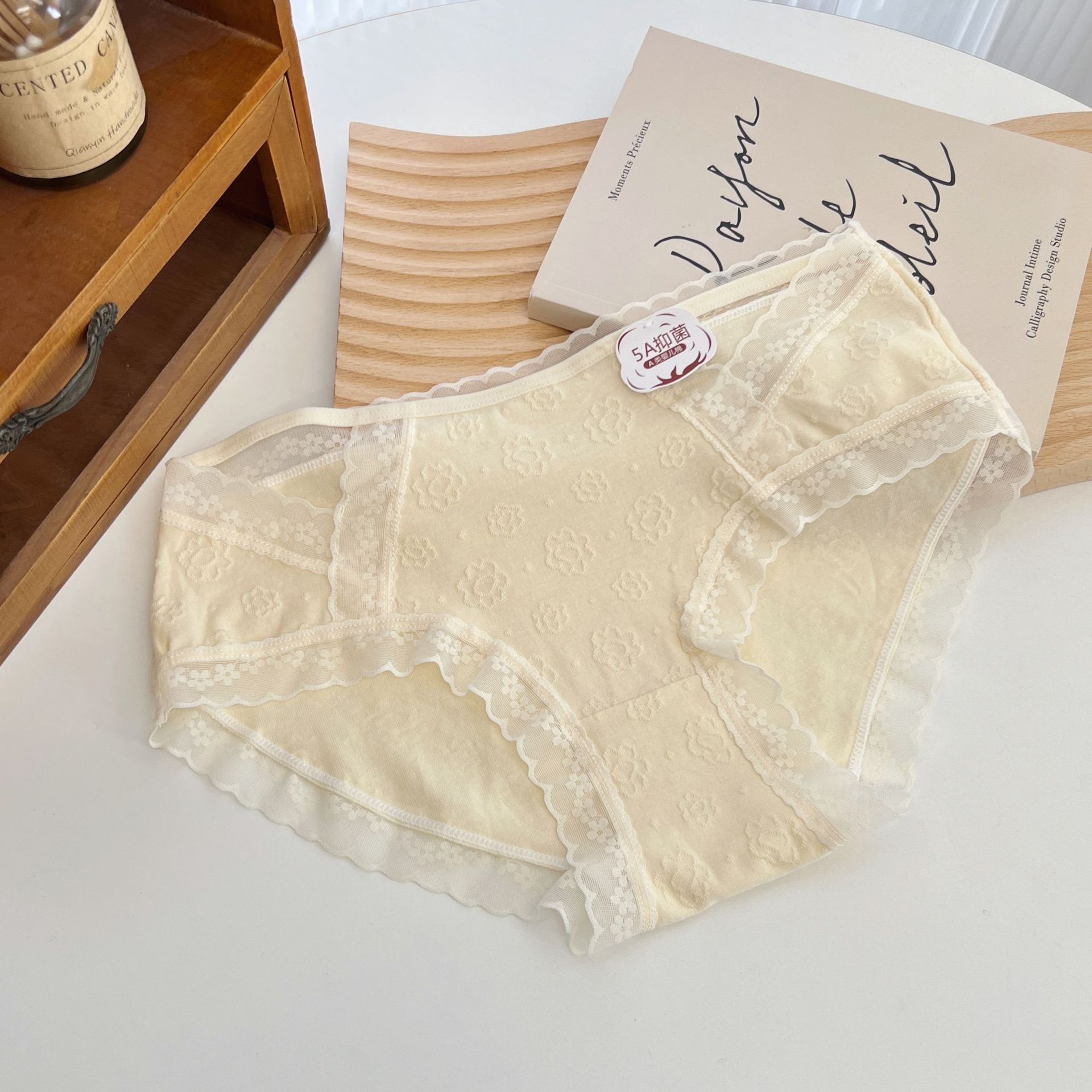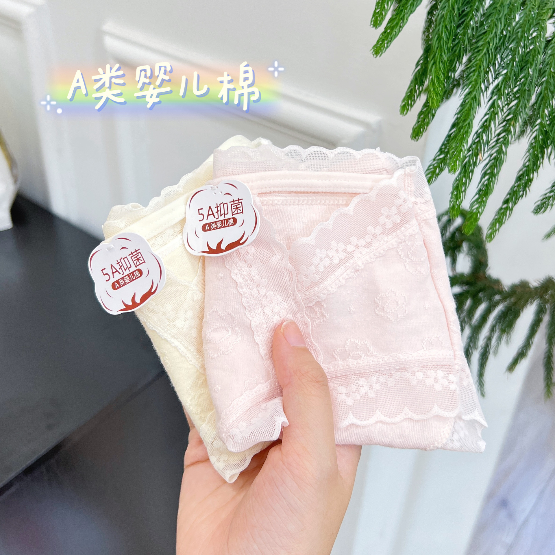 소녀를위한 클래스 A 아기 면 속옷 순수한 섹시한 중공 중간 허리 엉덩이 편안한 항균 여아 팬티