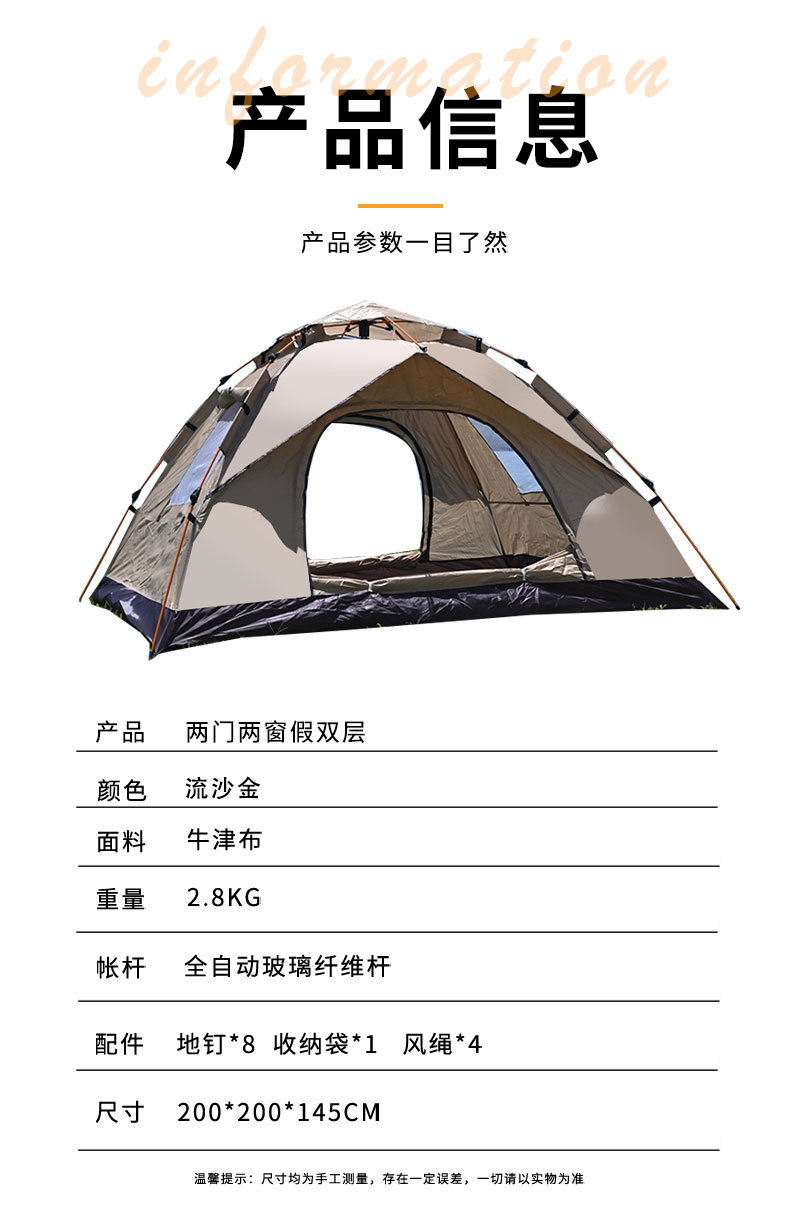 야외 캠핑 텐트 휴대용 자동 퀵 오픈 안티 UV 방수 캠핑 낚시 접이식 더블 텐트