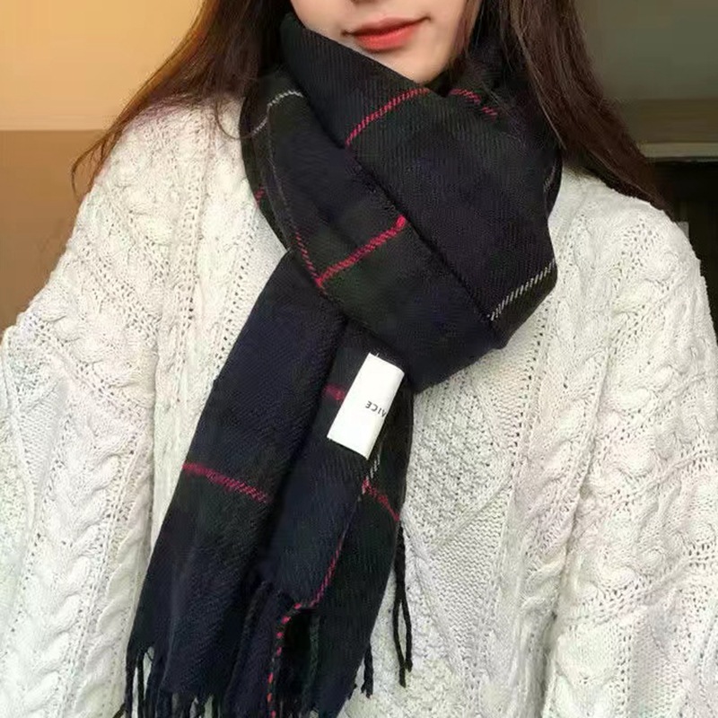 처리 사용자 정의 격자 무늬 스카프 여성의 한국 스타일 가을과 겨울 유럽과 미국 영국 스타일 모든 일치 두꺼운 따뜻한 새 격자 무늬 숄스토어 가기