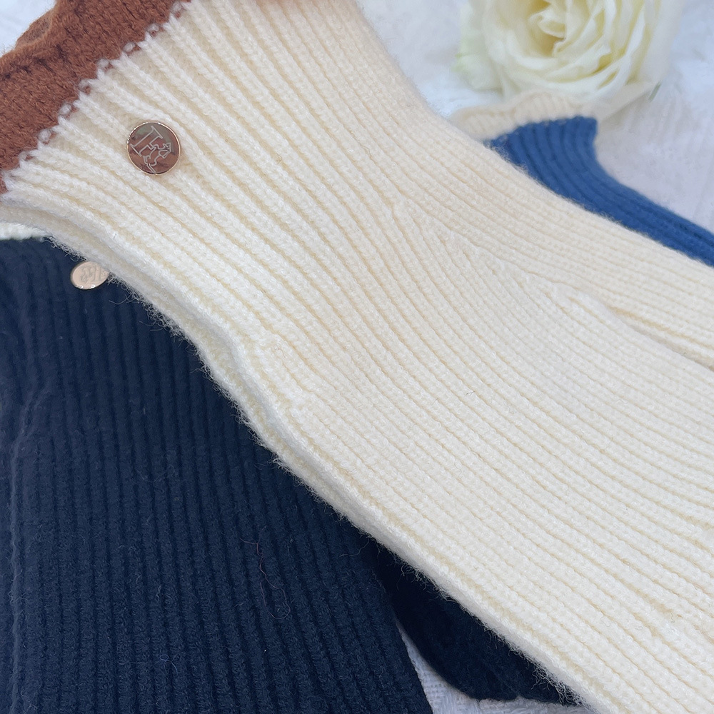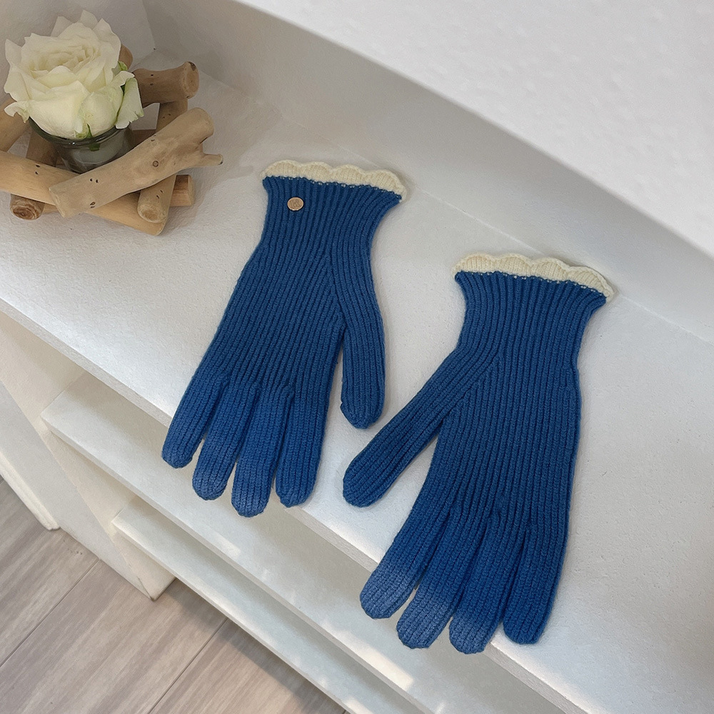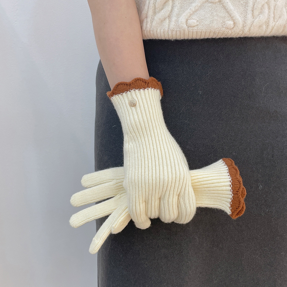 한국식 고가 달콤한 귀 가장자리 대비 색상 니트 울 겨울 따뜻한 장갑 여성용 이슬 두 손가락 모든 것을 포함하는 손가락