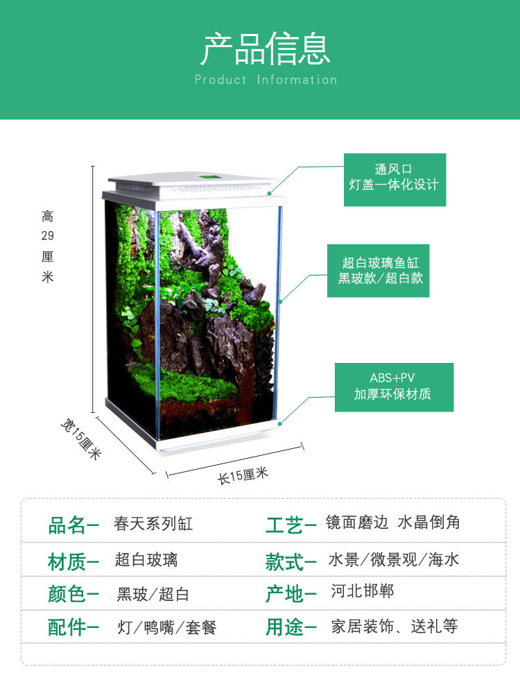 슈퍼 화이트 데스크탑 생태 특수 어항 안티 에어 리프팅 마이크로 풍경 어항 조경 가정용 물고기 및 물 잔디 탱크스토어 가기