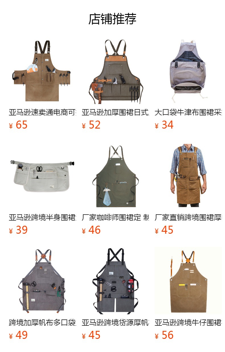 국경 간 무역용 두꺼운 캔버스 앞치마, 밀크티/커피숍 작업복, 베이킹/바베큐 직원용 작업복, 로고 인쇄 가능스토어 가기