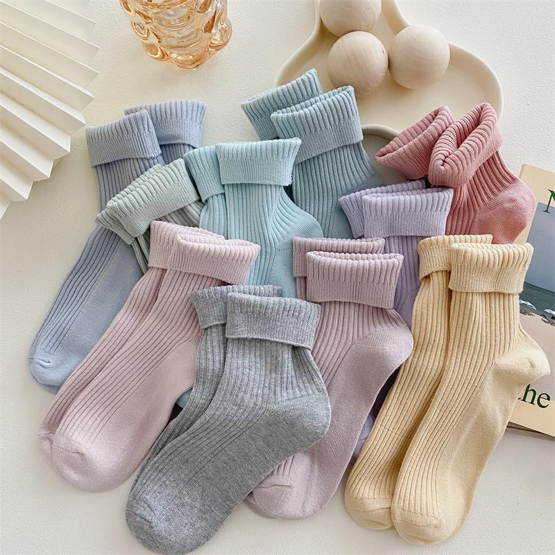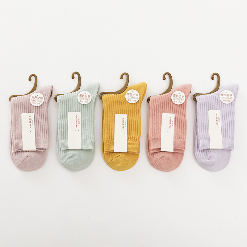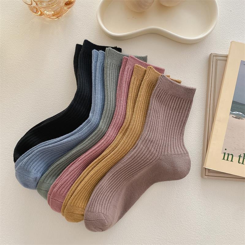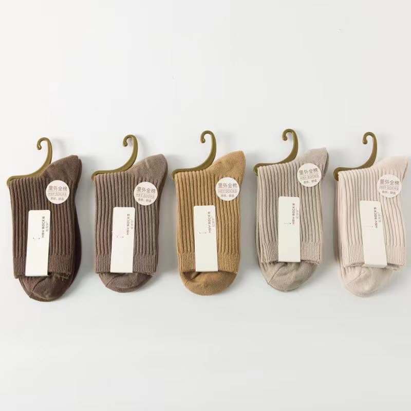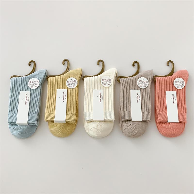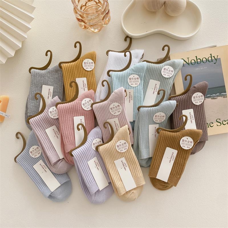 가을과 겨울 여성 더블 니들 코튼 캐주얼 미드 튜브 양말 라이브 룸 복지 80% 면 솔리드 컬러 코튼 컬러 양말스토어 가기