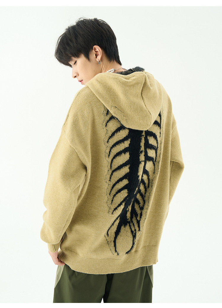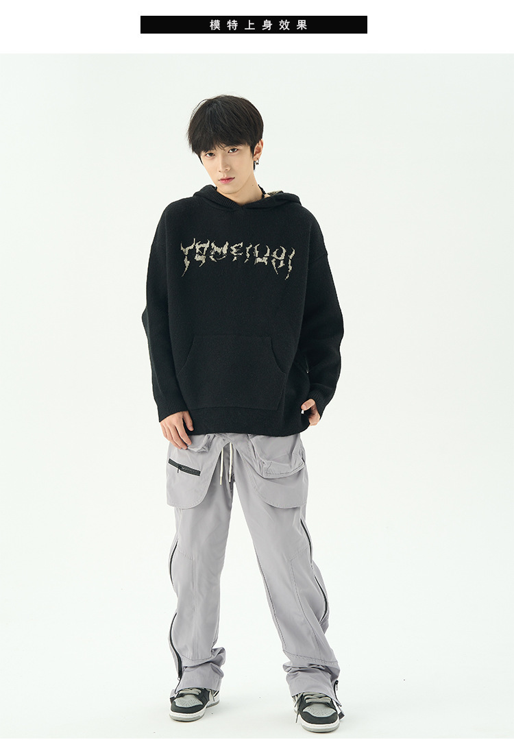 美式慵懒风毛衣男卫衣vibe国潮小众设计感连帽高街休闲宽松针织衫