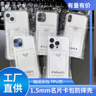1.5mm卡包名片防摔壳 适用于苹果14pro 透明TPU手机壳 工厂批发