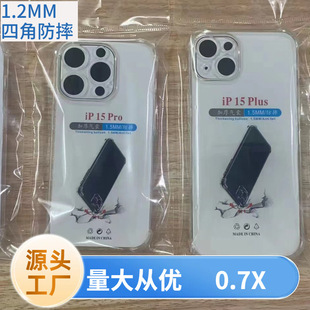 适用于苹果15plus 加厚四角防摔手机壳 透明TPU手机壳 工厂批发