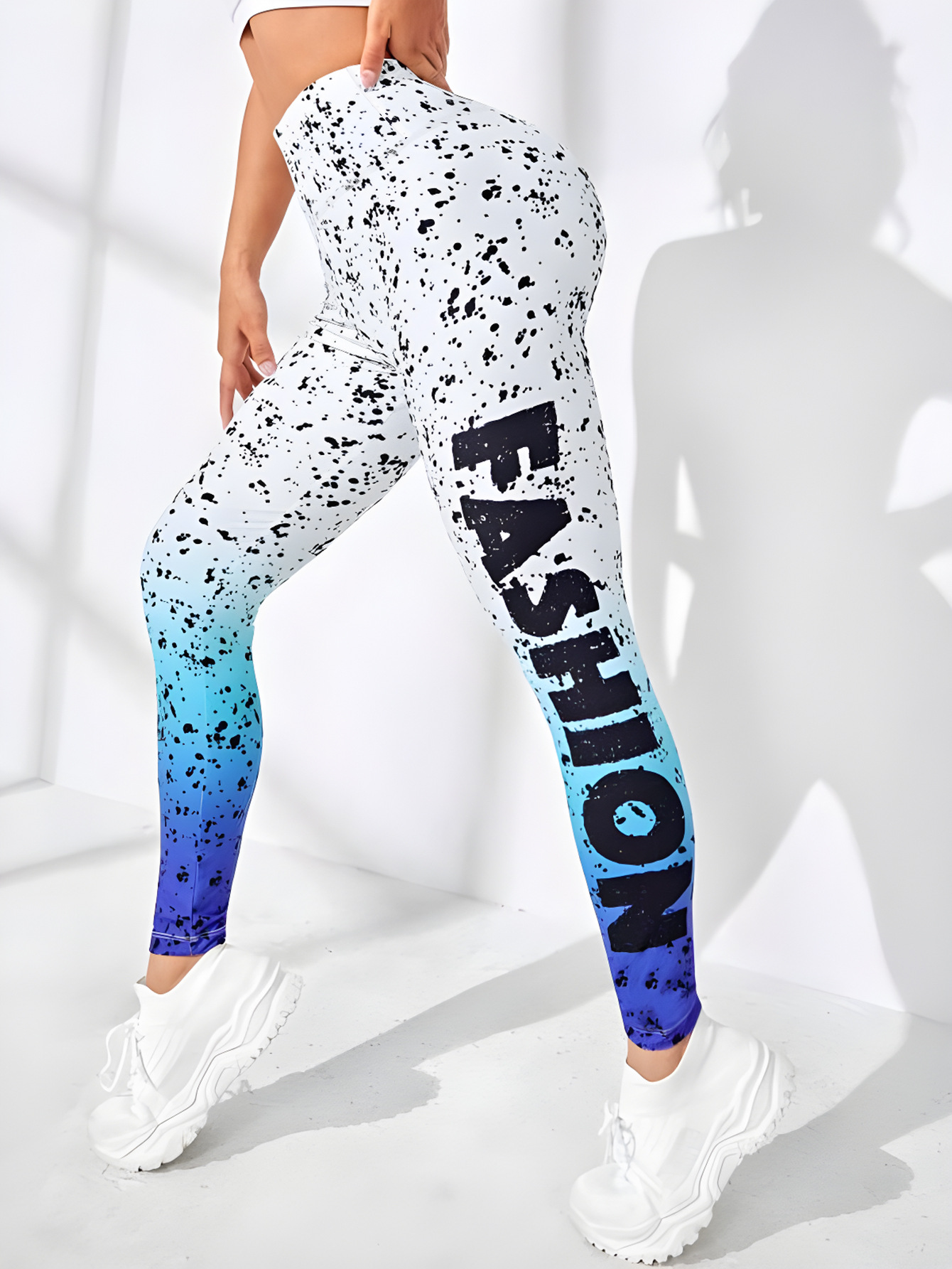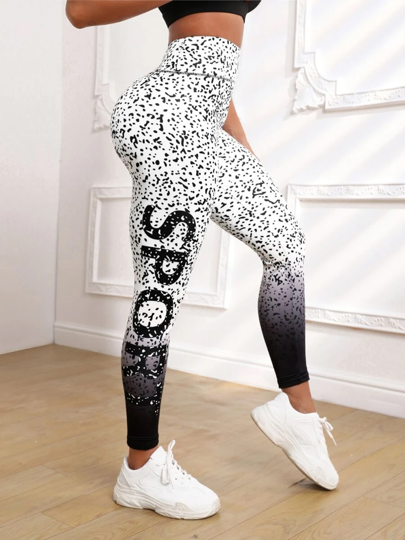 유럽과 미국의 국경 간 야외 스포츠 그라디언트 인쇄 알파벳 요가 바지 패션 슬림 핏 여성용 타이트 바지