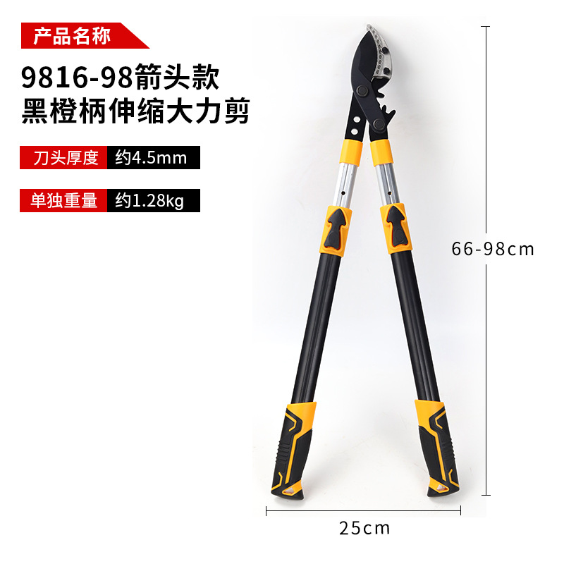 • 9816-98 화살표 스타일 검정색 주황색 손잡이 텔레스코픽 강력한 가위