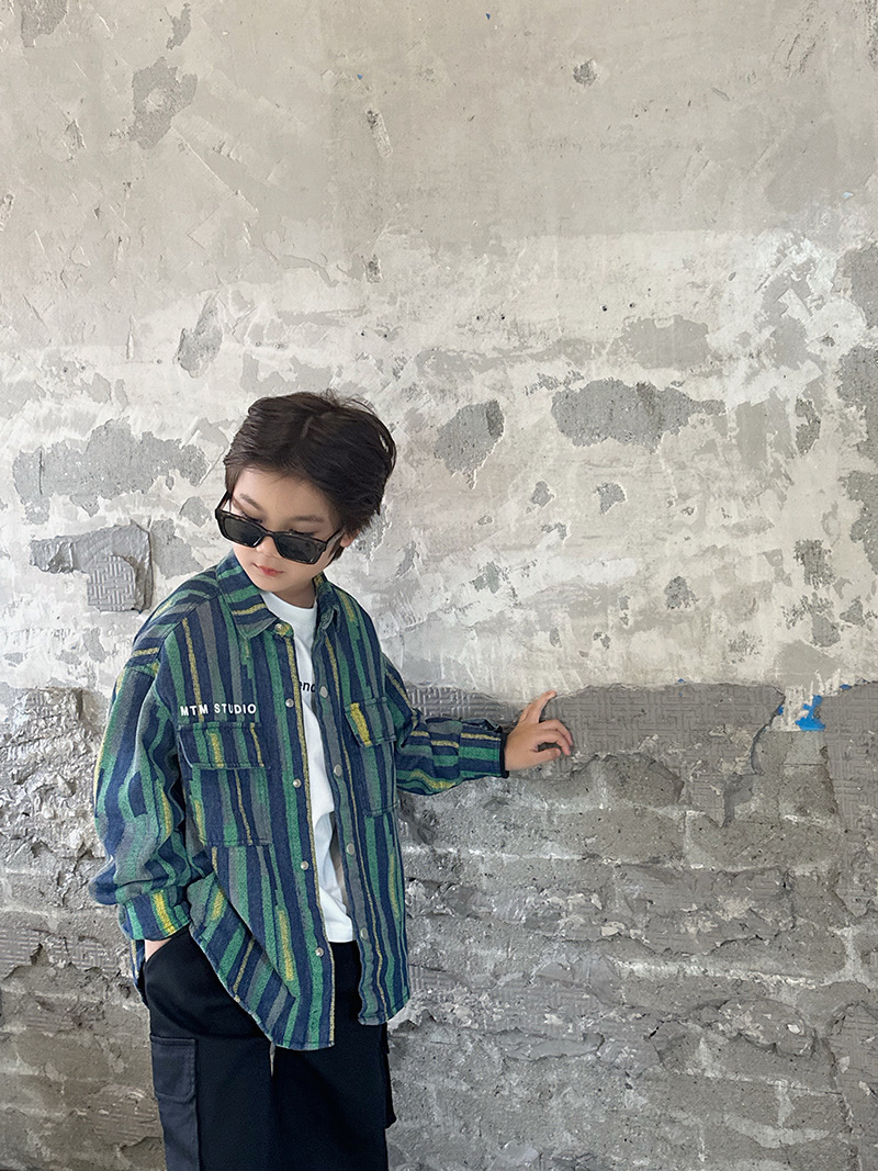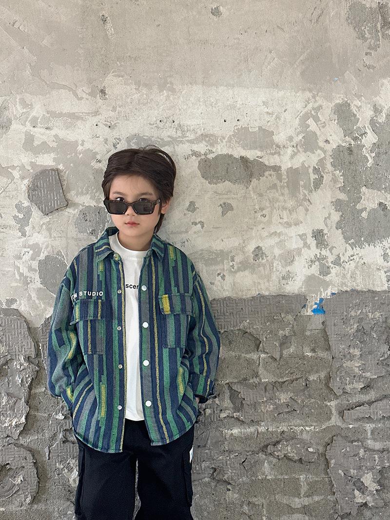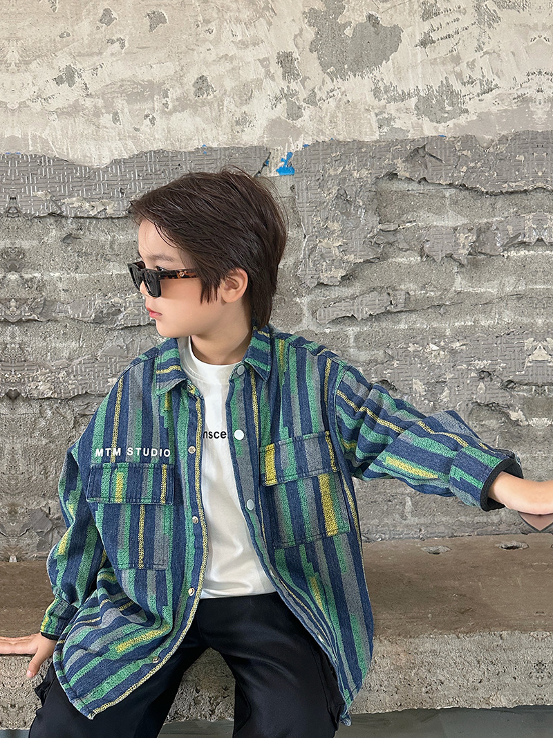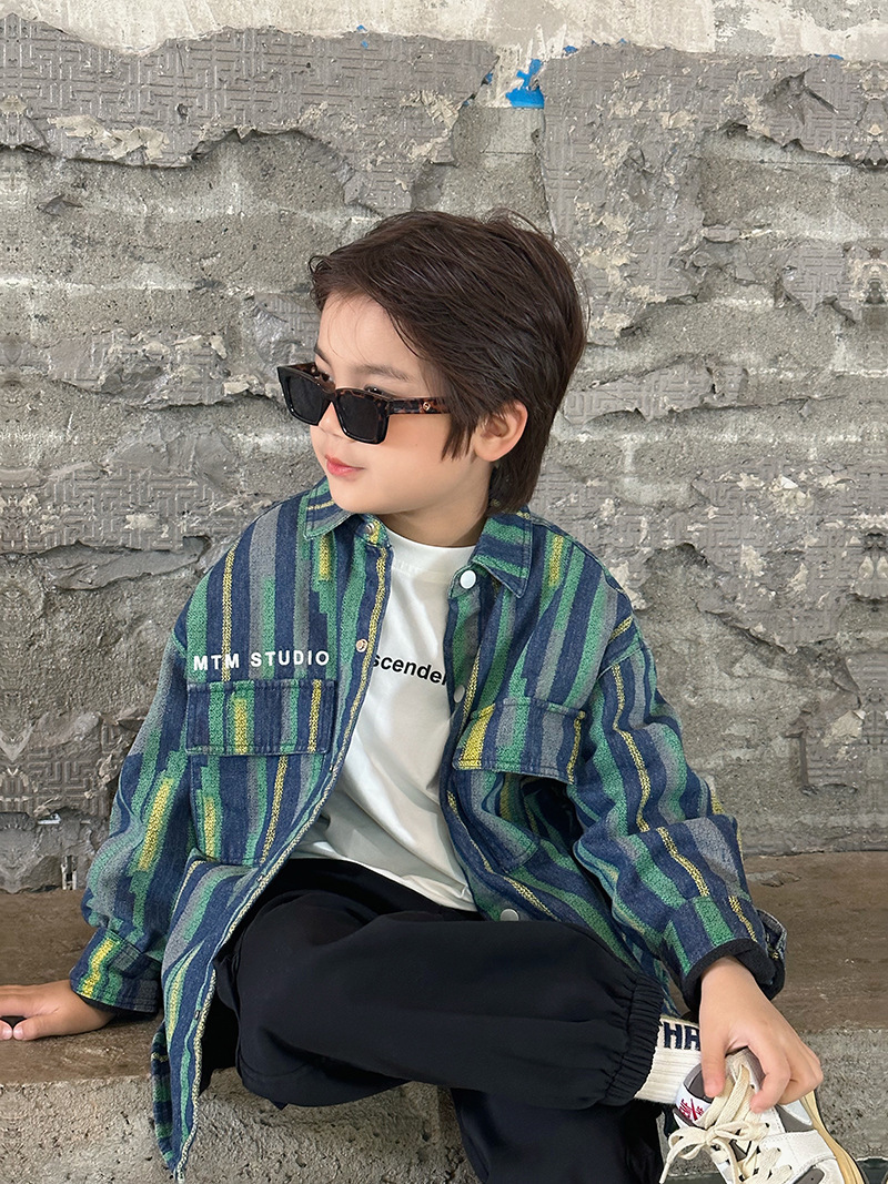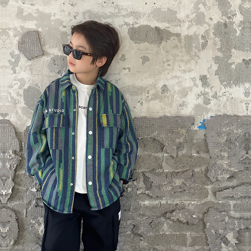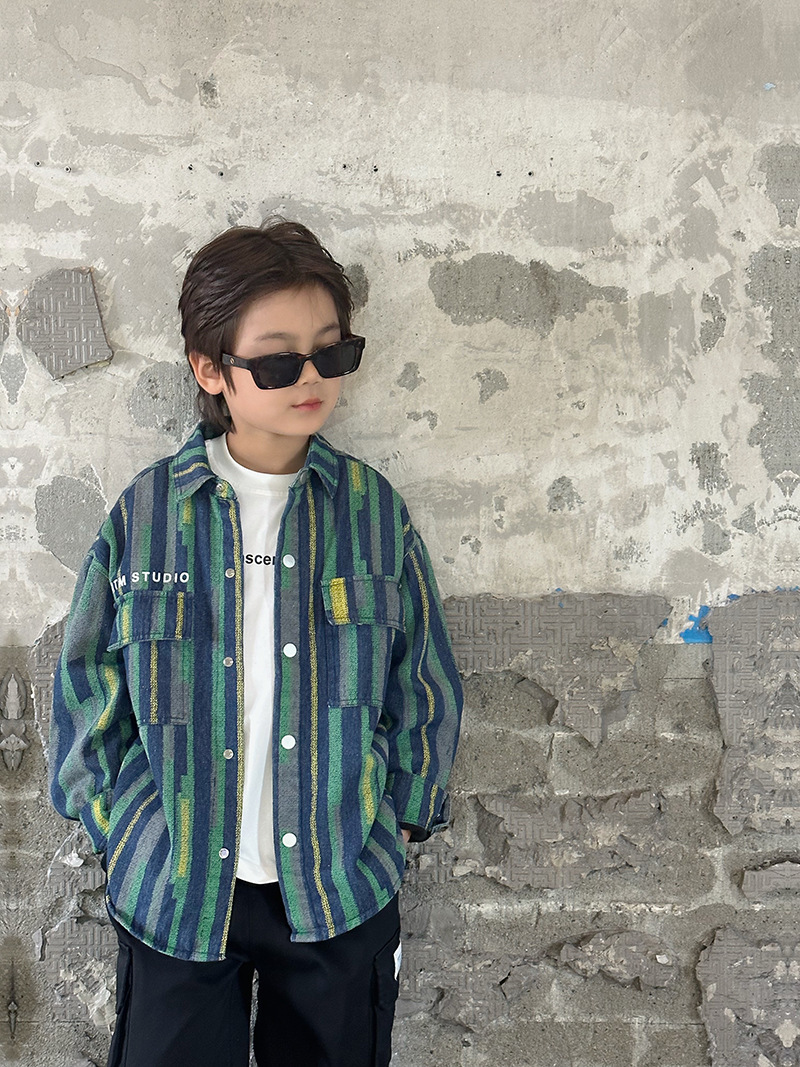 남자의 아동 의류 소년의 셔츠 코트 겨울 기모 어린이 데님 스트라이프 셔츠 긴 소매 탑