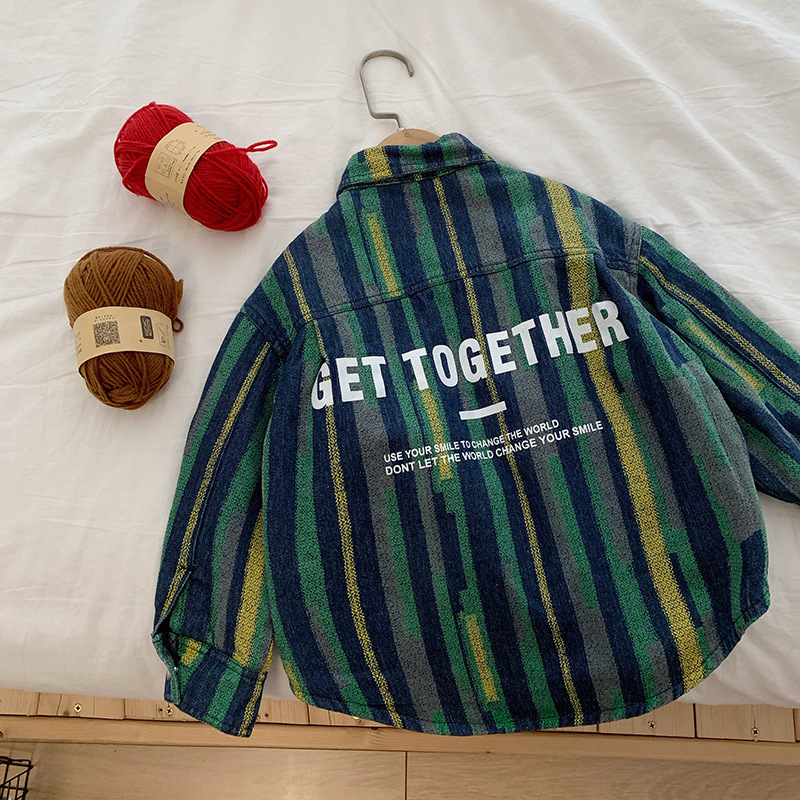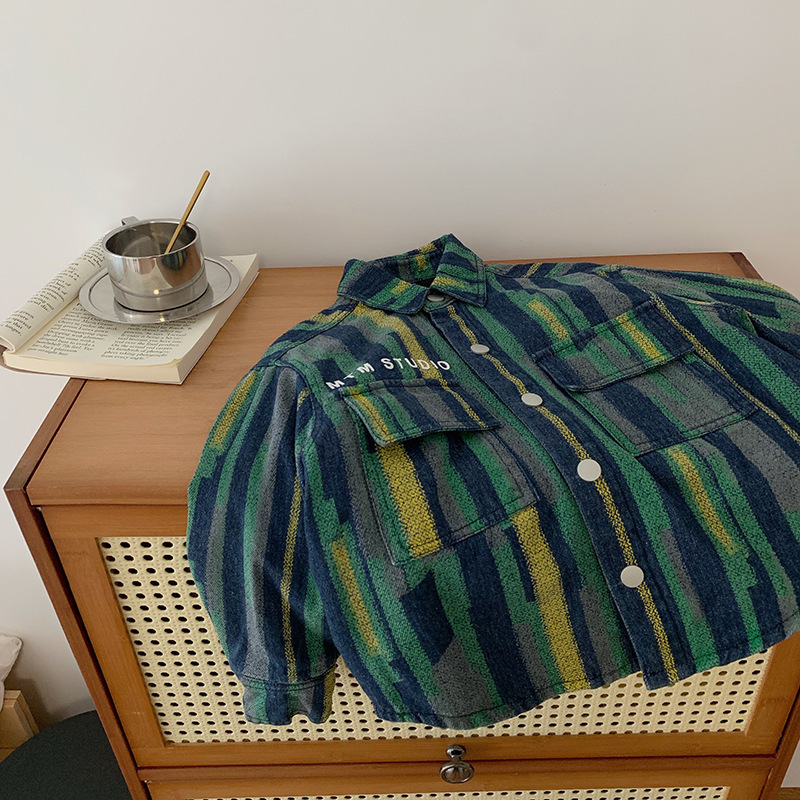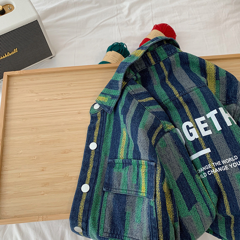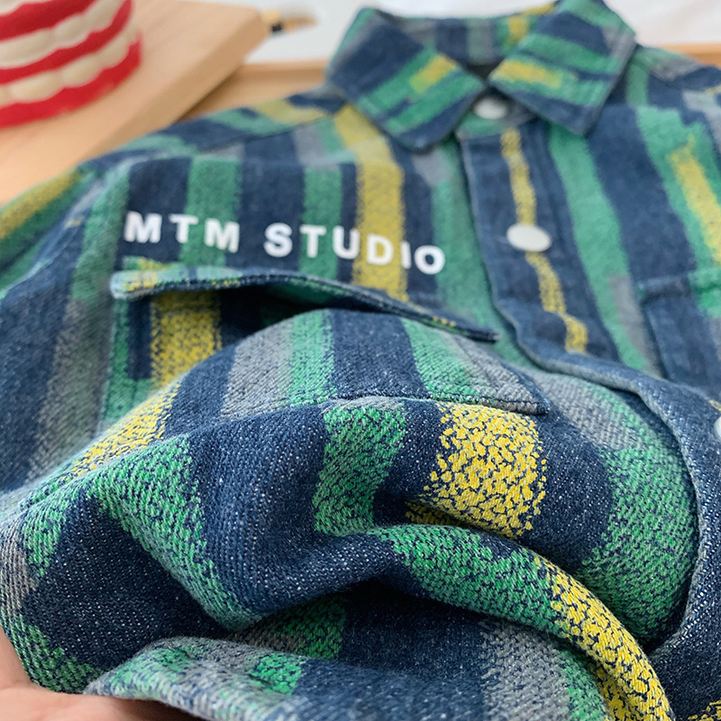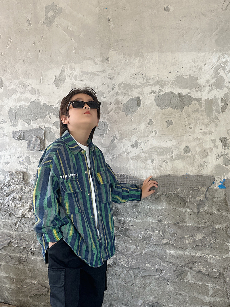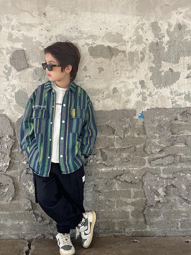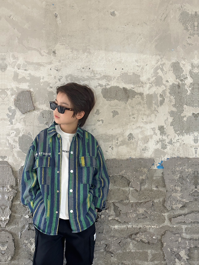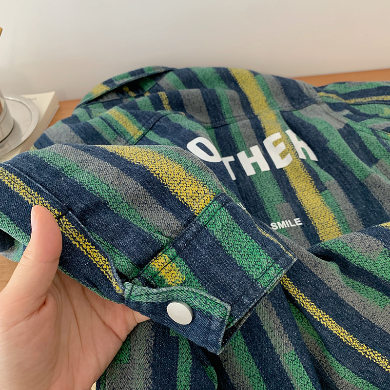 남자의 아동 의류 소년의 셔츠 코트 겨울 기모 어린이 데님 스트라이프 셔츠 긴 소매 탑
