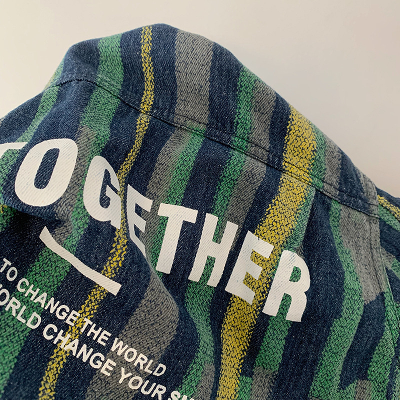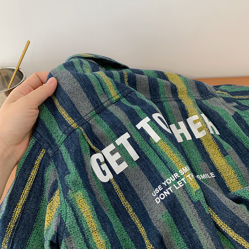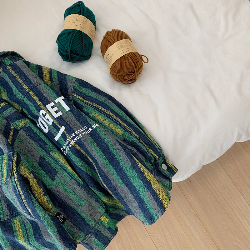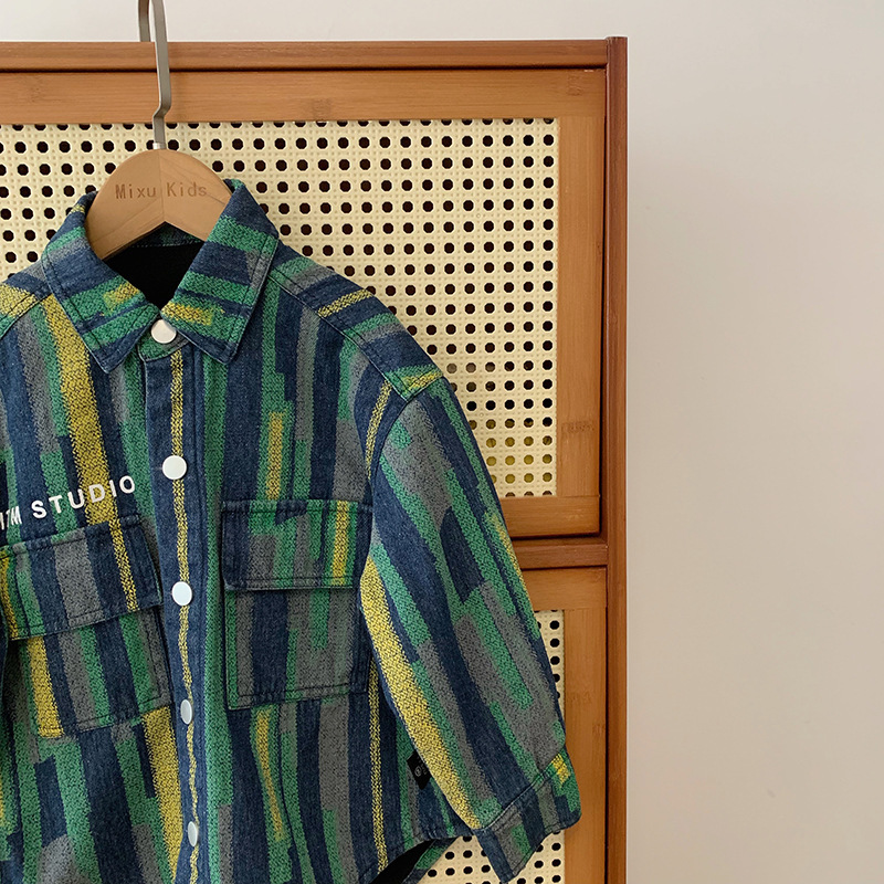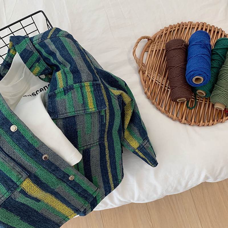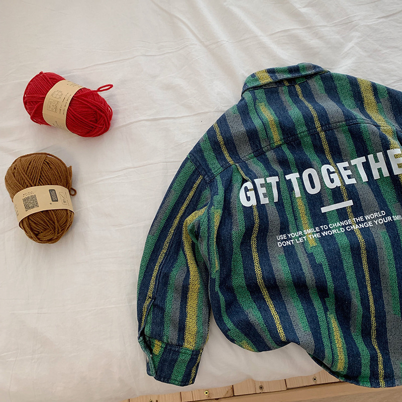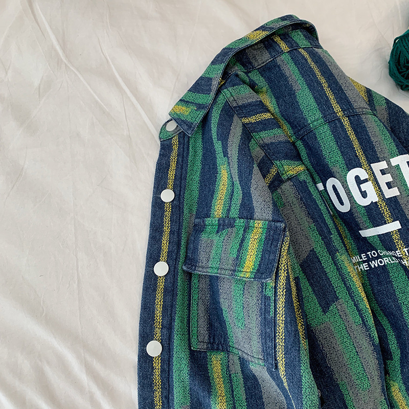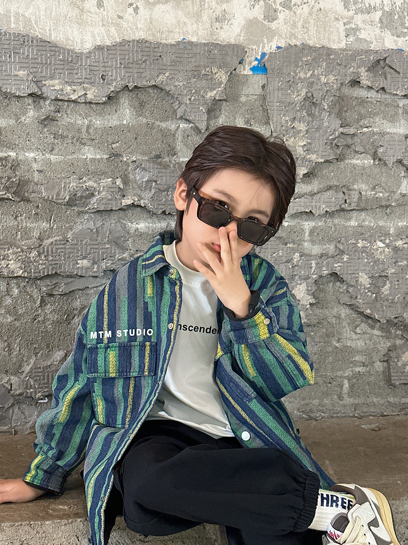 남자의 아동 의류 소년의 셔츠 코트 겨울 기모 어린이 데님 스트라이프 셔츠 긴 소매 탑