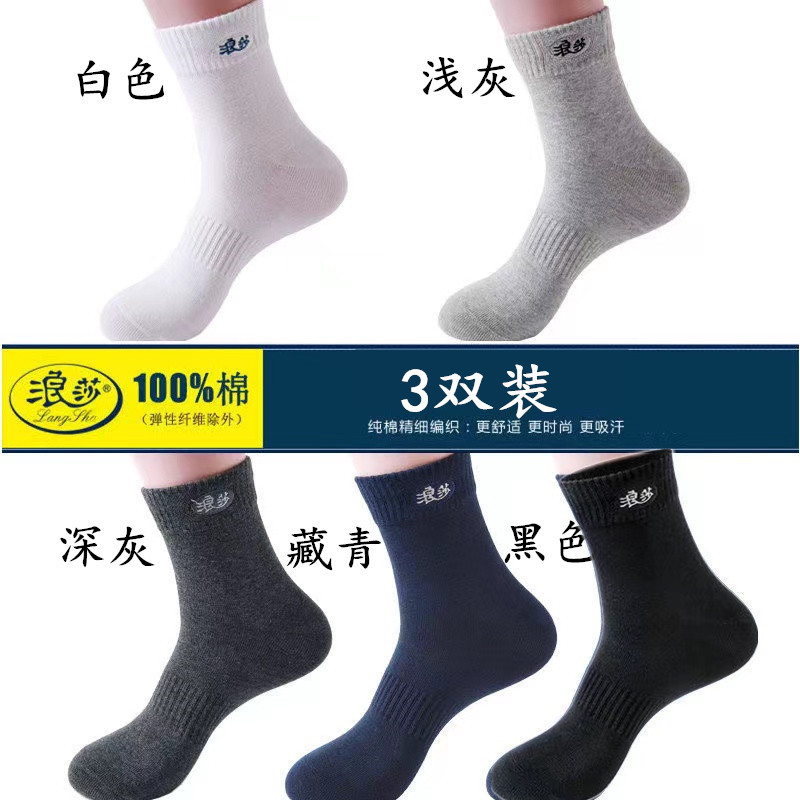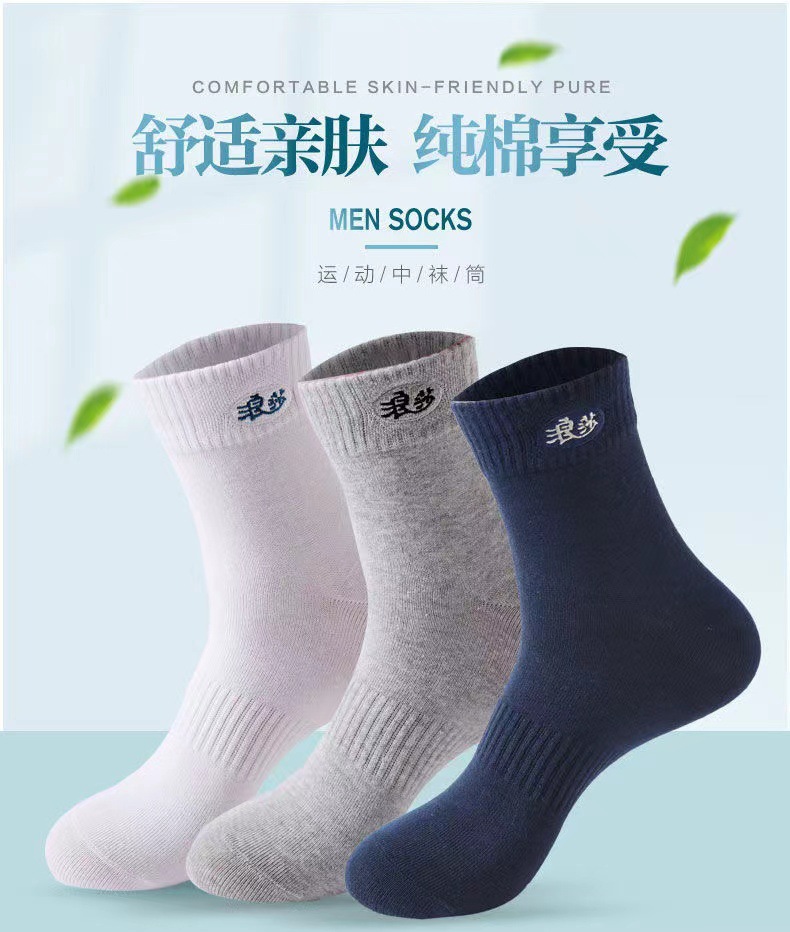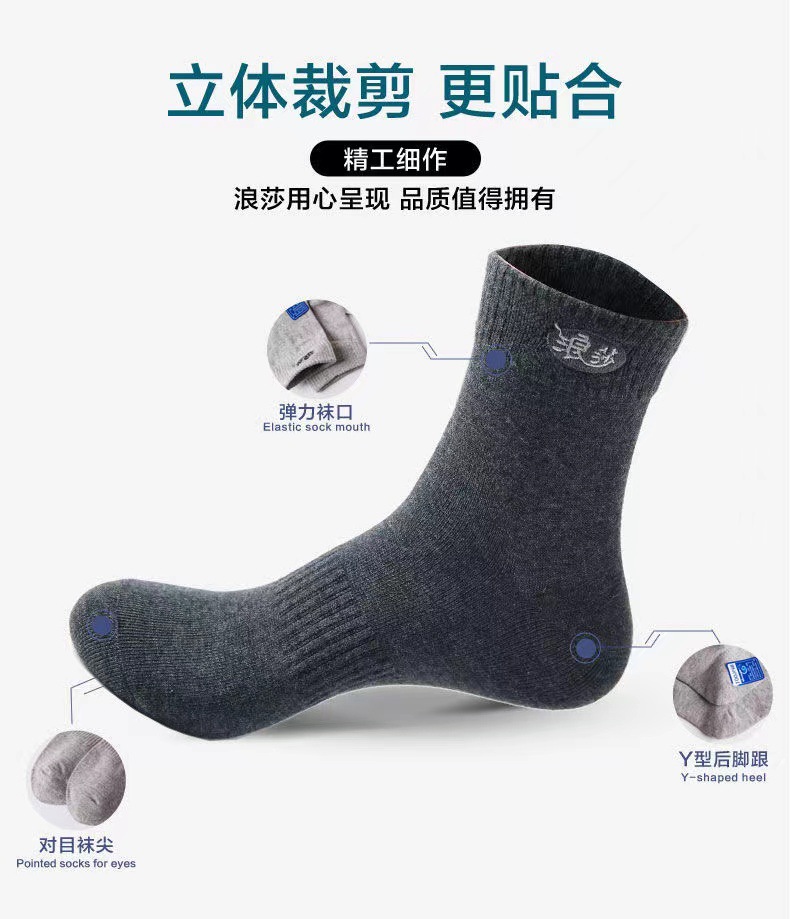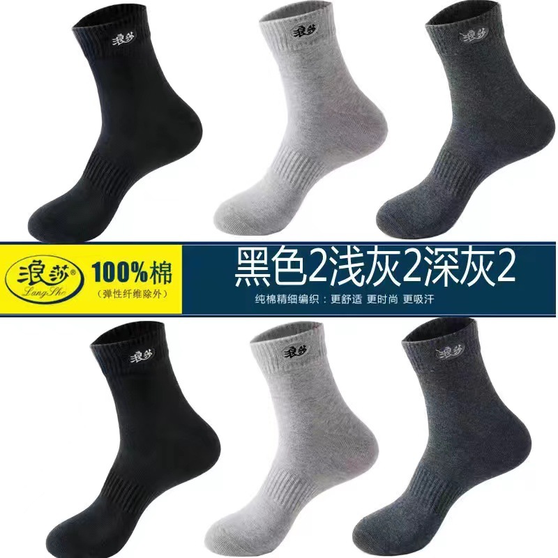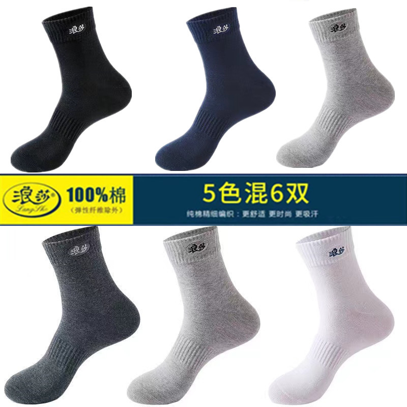 Longsha 양말 남성용 순면 자수 중순 가을과 겨울 중반 두꺼운 모든 면 냄새 방지 남성용 통기성 양말 남성용 양말