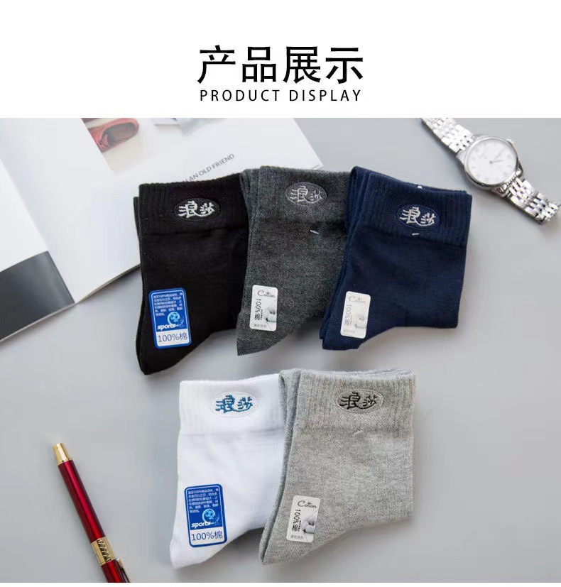 Longsha 양말 남성용 순면 자수 중순 가을과 겨울 중반 두꺼운 모든 면 냄새 방지 남성용 통기성 양말 남성용 양말스토어 가기