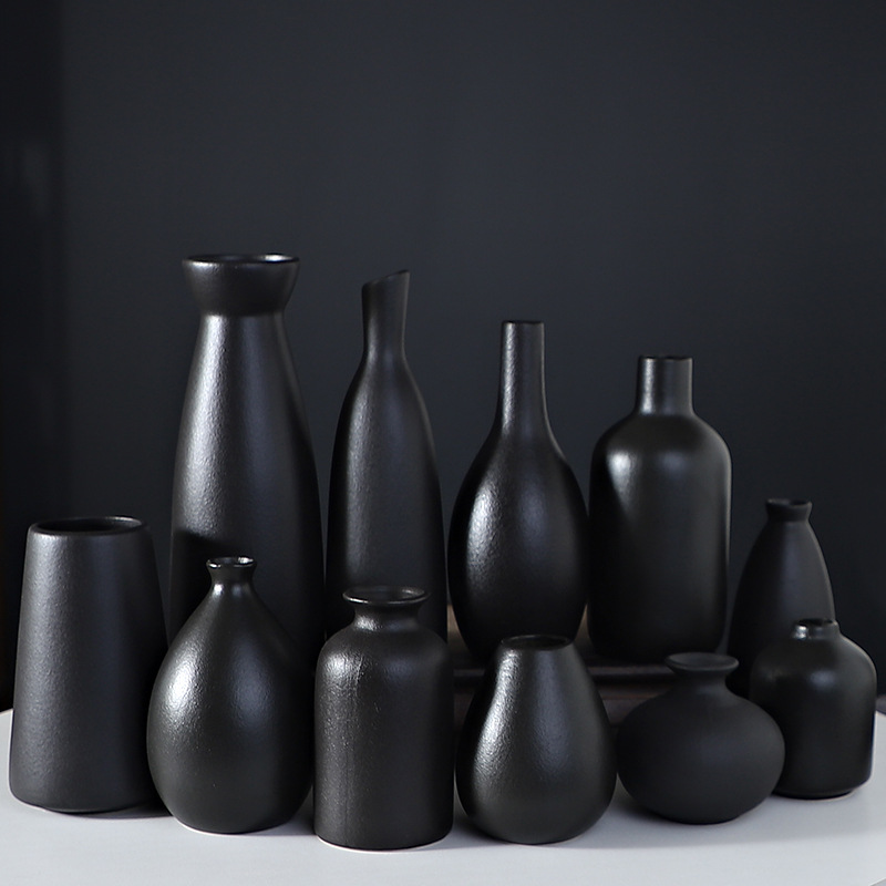 북유럽 인 바람 젖빛 블랙 세라믹 꽃병 도매 말린 꽃 거실 데스크탑 장식 장식품 시뮬레이션 꽃